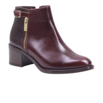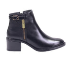 El diseño incluye un cierre lateral que facilita el calce, mientras que la parte trasera presenta una piel grabada que añade textura y sofisticación. Un fajillo decorativo con hebilla metálica en el lateral aporta un toque urbano y elegante, ideal para complementar looks casuales o semiformales.