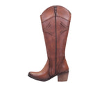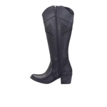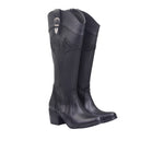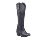 El cierre lateral permite un calce cómodo y seguro, mientras que el tacón ancho de 5.5 cm brinda altura con estabilidad. En la parte superior del tubo, una hebilla metálica añade un detalle distintivo que refuerza el estilo estructurado de la bota.