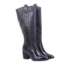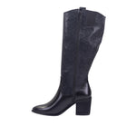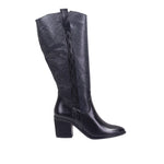 Bota para dama marca Francis en color negro. Diseño sofisticado con carácter urbano. Esta bota de tubo alto en piel artificial negra presenta un corte estructurado con cierre lateral que facilita el calce sin romper la estética. El tubo, de 34.00 cm de altura, está revestido con una textura tipo reptil que simula escamas finas, aportando profundidad visual y un acabado moderno que se distingue al tacto y a la vista.