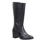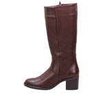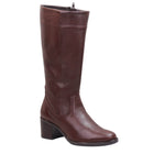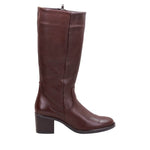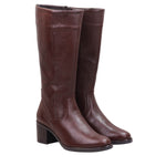 Bota de tubo largo para dama con tacón ancho y terminado en piel lisa