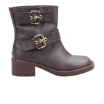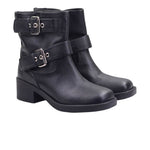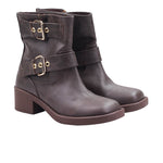 Bota para dama marca Nómadas en colores ferrero y negro. Este modelo tiene un acabado de piel lisa y viene con una doble tira con hebilla, lo que le da un look sofisticado y elegante. Además, cuenta con una plantilla de confort que te proporciona comodidad durante todo el día. Con un tacón de 4.5 cm, te brinda la altura perfecta sin sacrificar la comodidad.