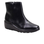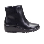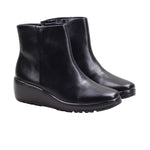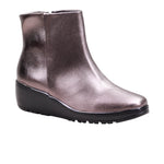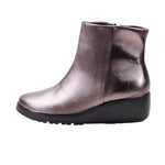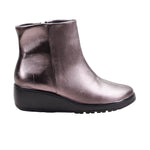 Bota para dama marca  Nómadas en  colores acero y negro. Este modelo cuenta con un elegante terminado en piel lisa, una plataforma de 5.00 cm en la parte trasera para mayor altura y una plantilla de confort para una sensación de comodidad todo el día. Disfruta de estilo y bienestar en un solo zapato.