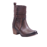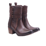 Botín para dama marca Maquech en color moka y negro. Inspirada en el espíritu del oeste pero con un giro moderno, esta bota estilo vaquero fusiona carácter y comodidad. Su corte y forro en piel artificial ofrecen una textura uniforme y resistente, ideal para quienes buscan estilo sin comprometer funcionalidad.