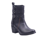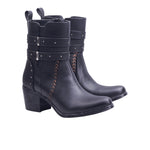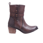Bota Vaquera con Tiras y Remaches, Cierre Lateral y Tacón