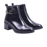 Botín Brillante con Tacón Ancho y Herraje Decorativo