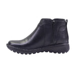 Botín para dama marca Lobo Solo en colores negro y besani. Este botín negro combina corte vacuno de alta calidad con forro textil suave, ofreciendo una sensación cómoda y duradera para el uso diario. Su diseño presenta una plataforma de 4.00 cm que brinda una elevación estable sin comprometer la comodidad, ideal para quienes buscan estilo con soporte.