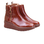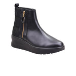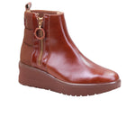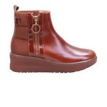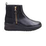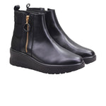 Botín para dama marca Francis en colores negro y savanne. Este modelo cuenta con un elegante acabado en piel lisa y un práctico cierre lateral para un ajuste perfecto. Además, su plataforma con altura trasera de 4.5 cm brinda mayor comodidad al caminar. La parte trasera en textil le da un toque moderno y versátil.