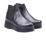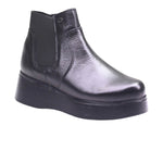 Botín para dama marca Barcassi en color negro. Este modelo de piel vacuna ofrece comodidad y estilo gracias a su diseño con elástico en lateral para un ajuste óptimo. La plataforma de 5.5 cm proporciona una postura ergonómica y el cierre asegura una sujeción perfecta. Ideal para el uso diario o para ocasiones especiales.