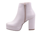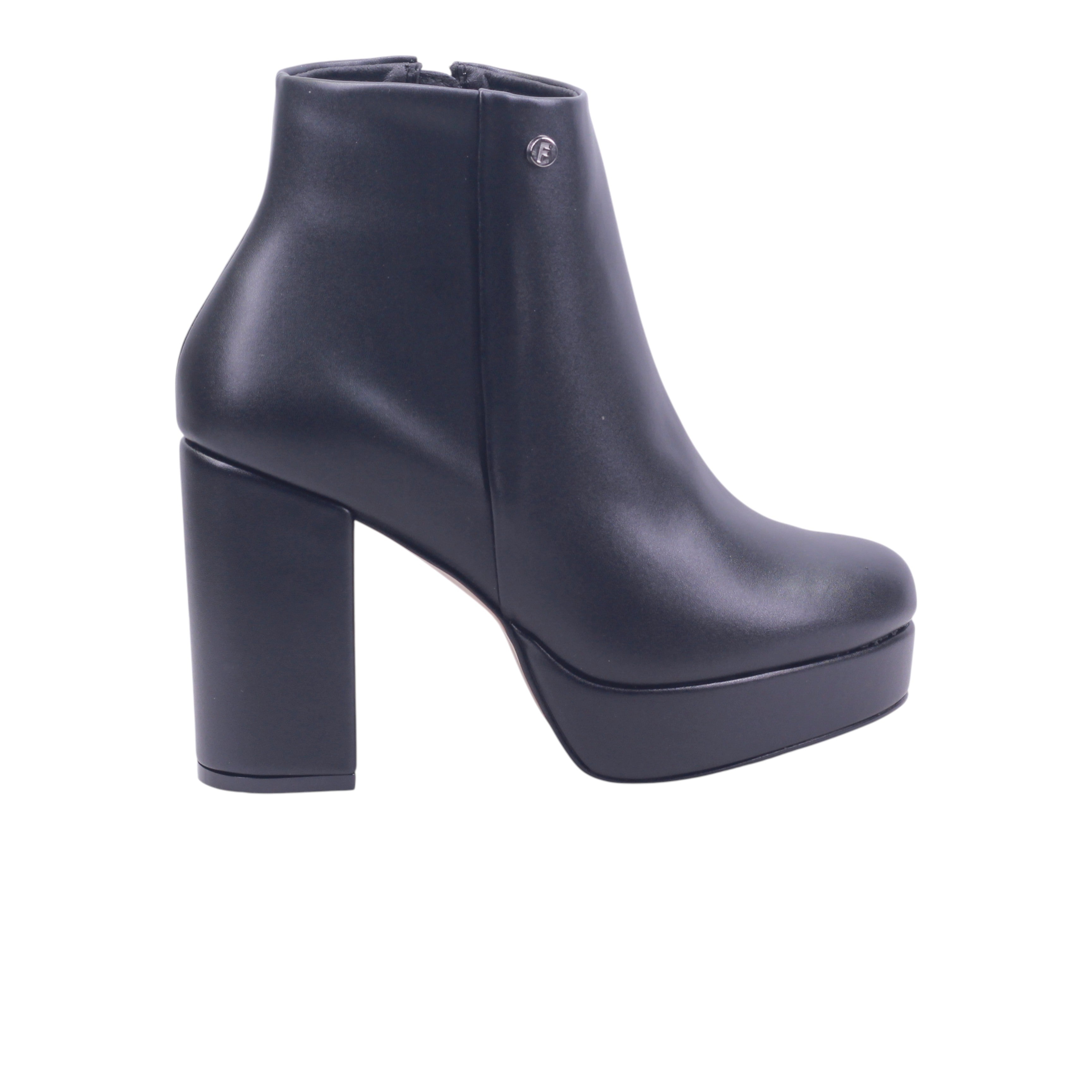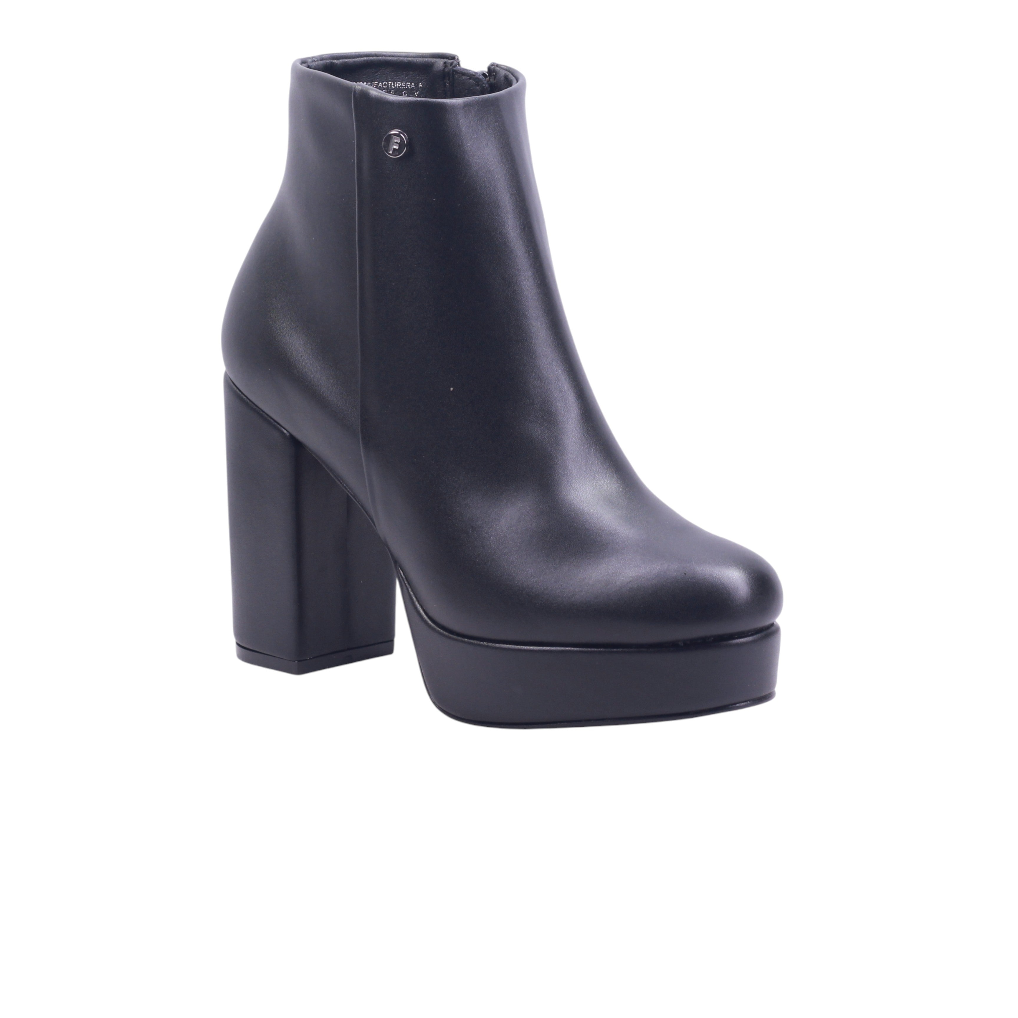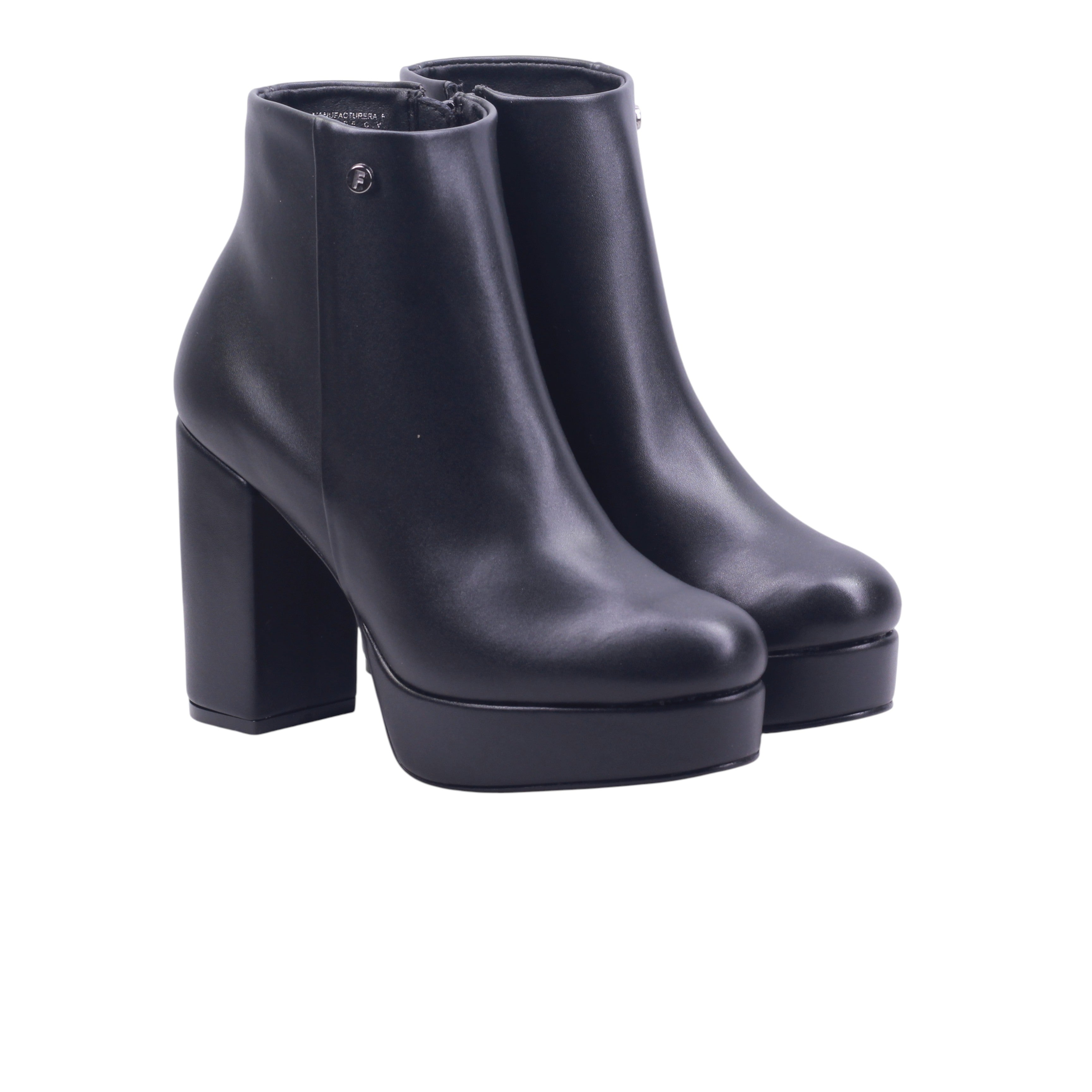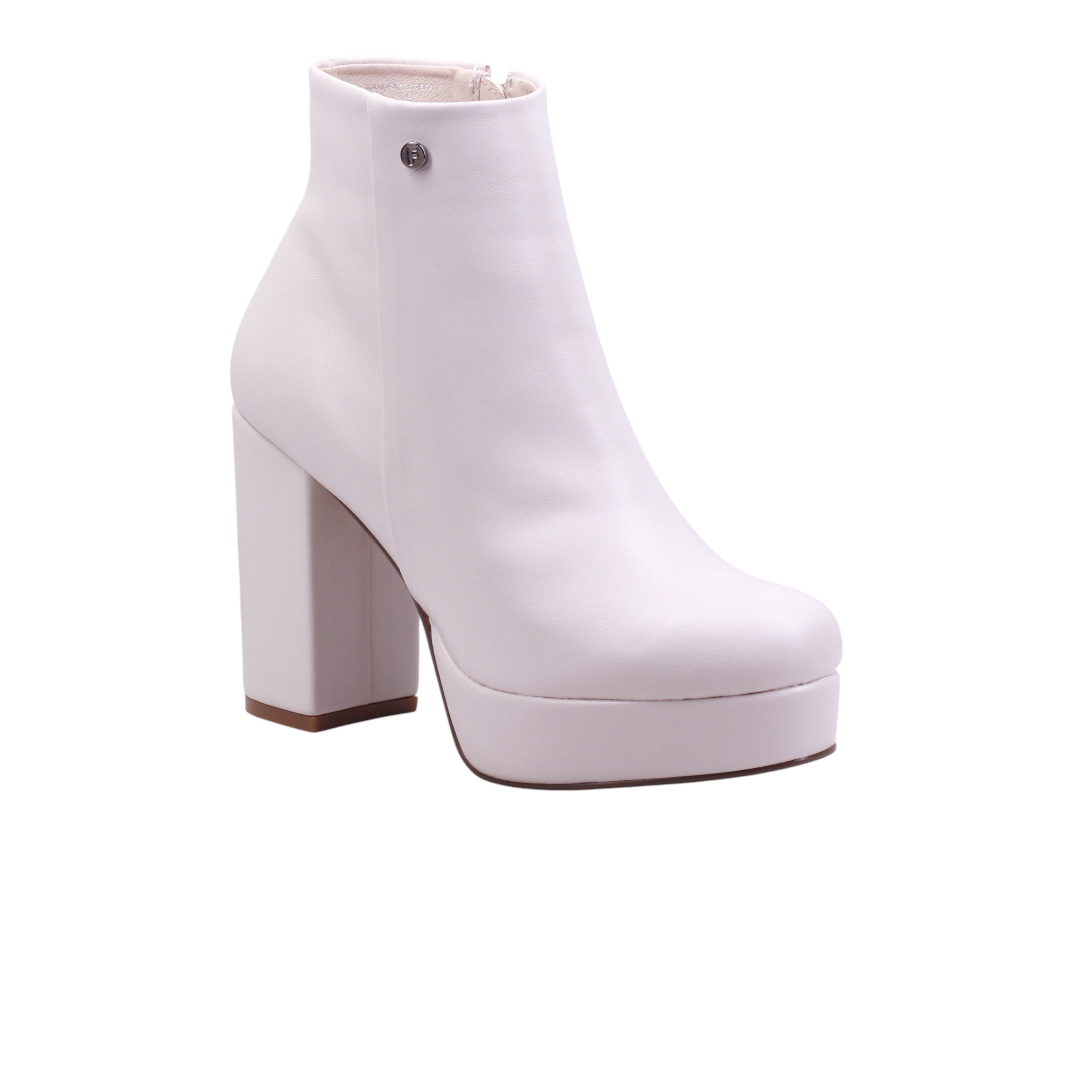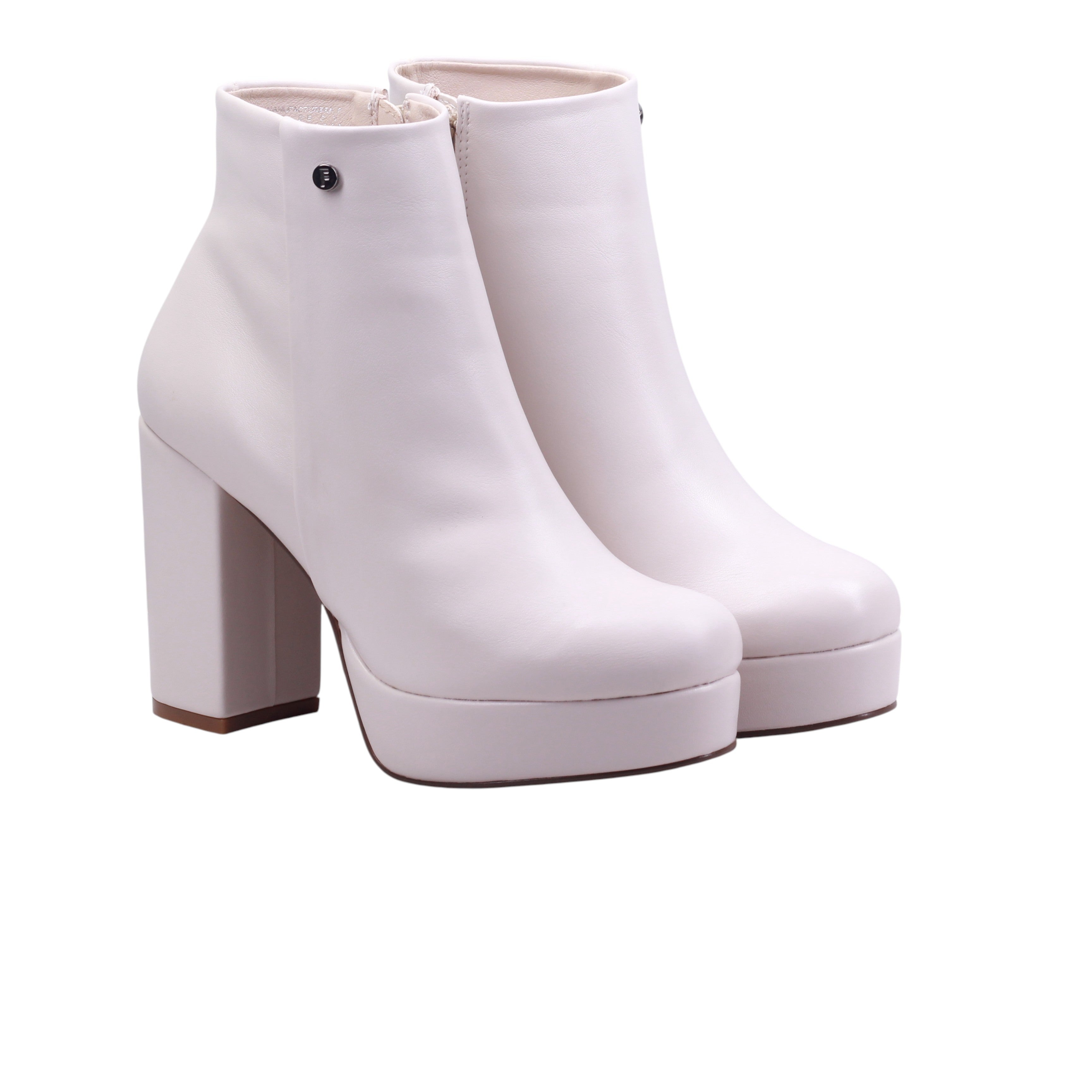 Botín para dama marca Efe en colores late y negro. Modelo de corte artificial y forro textil, diseñado para destacar con estilo y altura. Su silueta moderna incluye cierre lateral que facilita el calce y aporta un ajuste seguro. El tacón de 9.5 cm en forma de bloque, combinado con una plataforma discreta, ofrece una elevación poderosa con estabilidad, ideal para looks urbanos o eventos nocturnos. El acabado liso en tono claro y el diseño limpio lo convierten en una pieza versátil. En el lateral superior, un pequeño botón metálico decorativo añade un toque sutil y elegante. La suela en contraste y el interior suave completan un modelo pensado para lucir con confianza y comodidad.