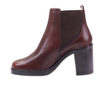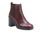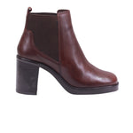 Bota para dama marca Gino Cherruty en colores brwon y negro. Este botín negro está confeccionado en piel vacuna de acabado liso, con forro artificial que proporciona suavidad interior y confort prolongado. Su diseño tipo slip-on incorpora paneles elásticos laterales, permitiendo un calce fácil y seguro sin necesidad de cordones ni cierres visibles.