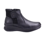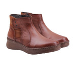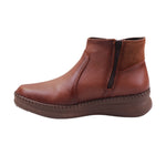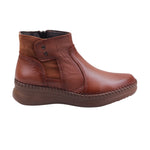 Botín para dama marca Lobo Solo en colores miel y negro. Este botín negro está elaborado en piel vacuna con forro textil, ofreciendo una combinación de resistencia exterior y confort interior. Su diseño presenta una suela corrida de 4.00 cm, que proporciona una base firme y uniforme, ideal para quienes buscan estabilidad sin sacrificar estilo.