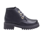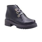 Botín para dama marca Francis en color negro. Este modelo es perfecto para un look elegante con piel lisa artificial. El tacón de 4.00 cm brinda un toque de elevación sin sacrificar comodidad. El ajuste en agujetas garantiza un ajuste personalizable para un caminar seguro.