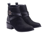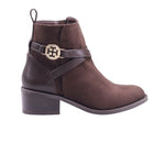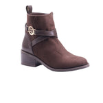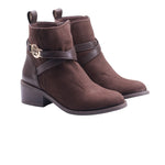 Bota para dama marca Francis en colores negro y café. Este modelo cuenta con tacón de altura de 4.5 cm que permite una caminata cómoda y estable. Sus tiras cruzadas de adorno le dan un toque elegante y el cierre de ajuste lateral garantiza un calce perfecto. Ideal para cualquier ocasión, este calzado ofrece estilo y comodidad en un solo producto.