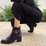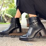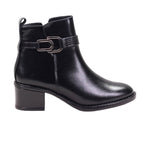 Bota para dama marca Francis en colores negro y moka. Este botín de tubo corto está hecho de piel lisa y cuenta con un cierre lateral y un fajillo con grabado para un ajuste perfecto. Con un tacón de 4.5 cm de altura y un adorno lateral, estos botines no solo te mantendrán cómoda sino que también añadirán un toque de estilo a tu look. ¡Ideal para cualquier ocasión!