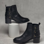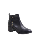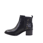 Bota para dama marca Francis en color negro. Originalidad y estilo para tu atuendo. Con estas botas de tubo cortas. Consigue un look que te hará ver genial esta temporada. Se trata de un modelo muy sencillo de combinar con tu guardarropa actual. Alta suavidad y amplitud, cuenta con un adorno lateral de rectángulos metálicos, además con su tacón de 5,00 centímetros disfrutarás de una comodidad sin igual. Este modelo destaca por su aspecto sobrio y elegante.