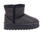 Botas para dama marca Furor en color negro. Estas botas combinan estilo y funcionalidad, perfectas para los días fríos. Su interior amplio y cómodo te permitirá caminar con facilidad, mientras que la suela corrida de 4.5 cm te da un ligero aumento en altura sin sacrificar confort. El diseño adornado con pedrería artificial añade un toque de glamour, haciendo de estas botas una elección ideal para cualquier ocasión invernal.
