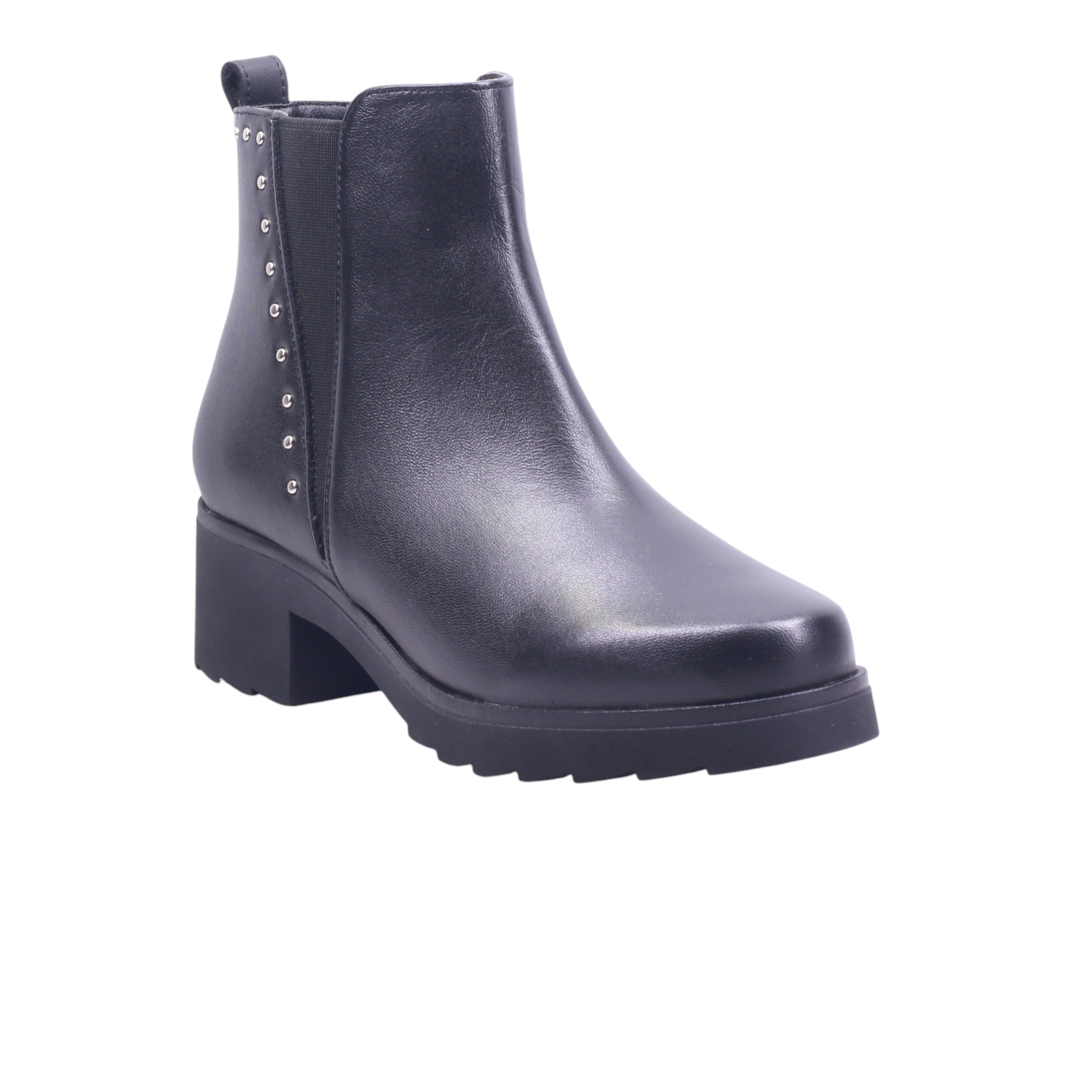 Botin para dama con tacon medio cuadrado y estoperoles en el tubo