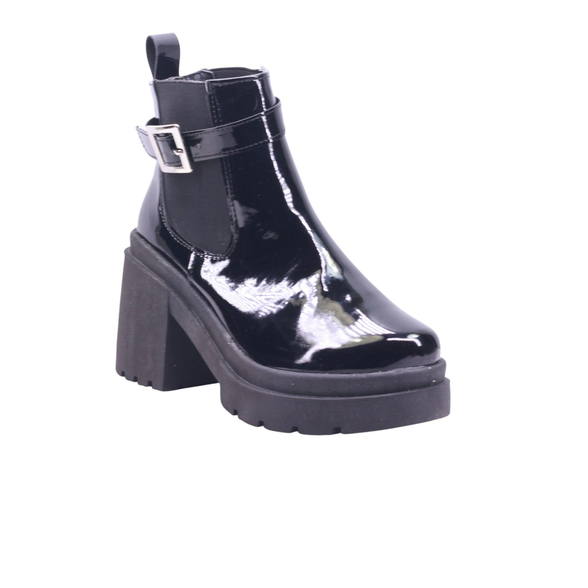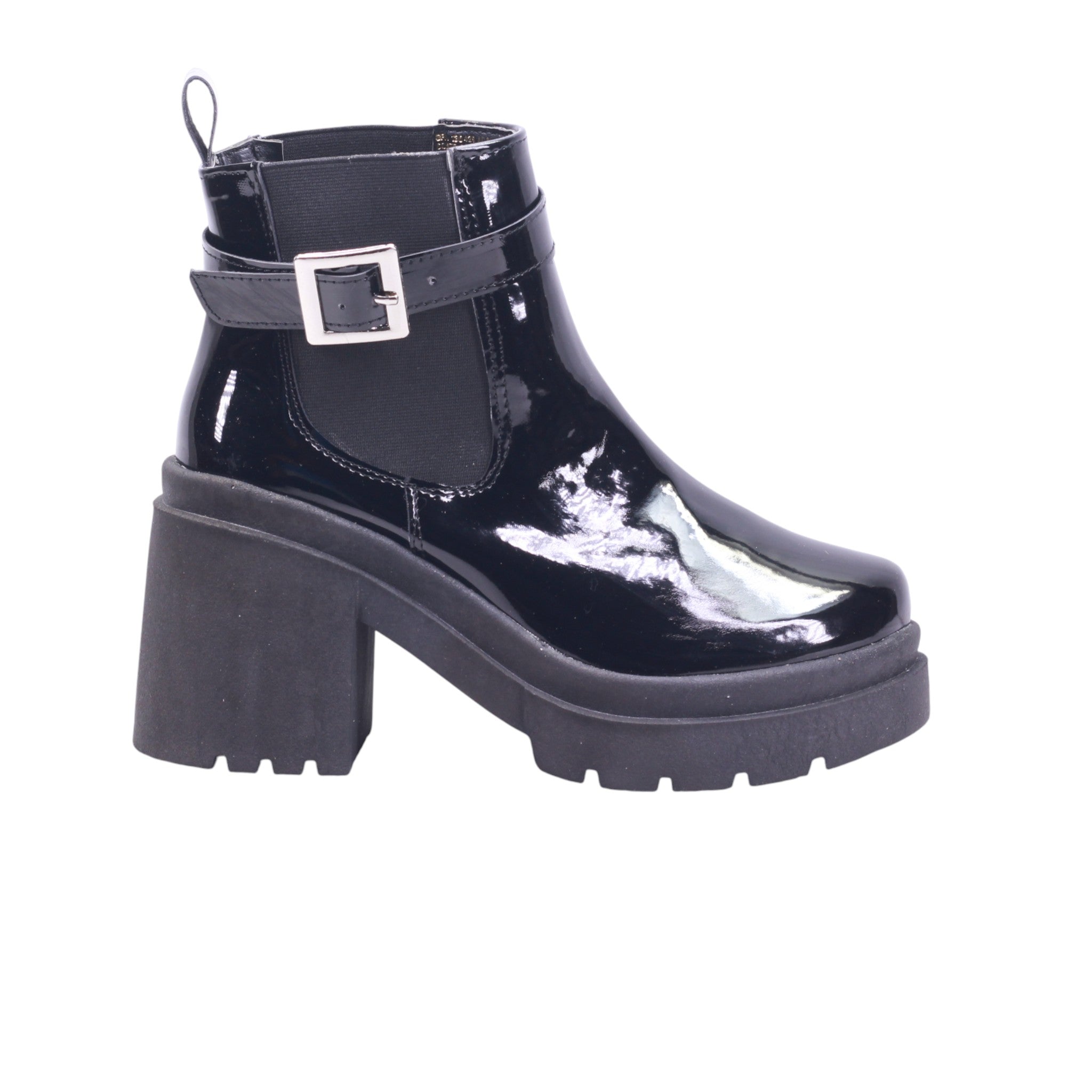 Botín para dama de tacón ancho alto y doble plataforma, plantilla de confort