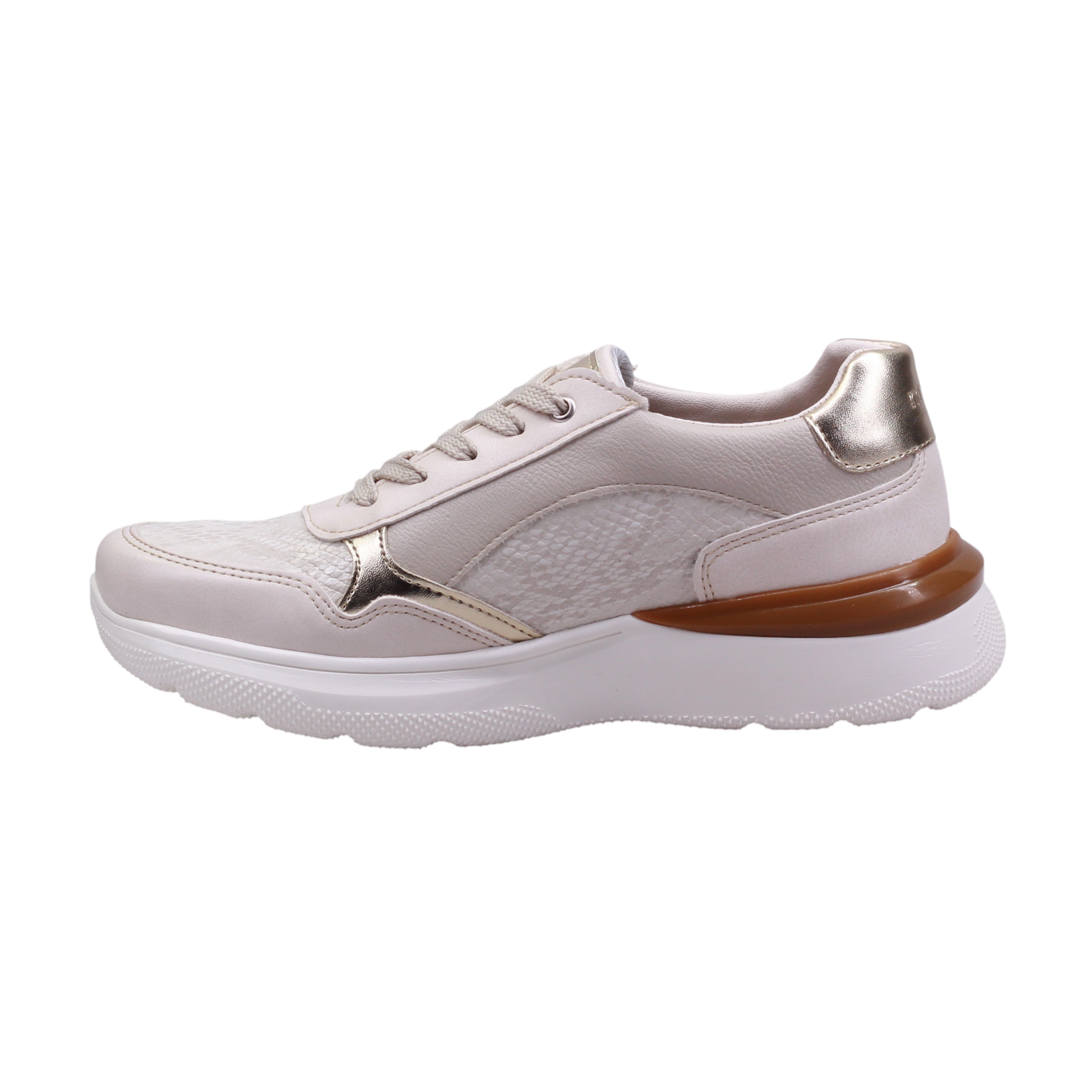 La suela blanca con detalle marrón en el talón tiene dibujo antiderrapante, ideal para caminar con seguridad. Este modelo fusiona lo deportivo con lo urbano, siendo perfecto para looks casuales, salidas cotidianas o incluso para oficina con estilo relajado.