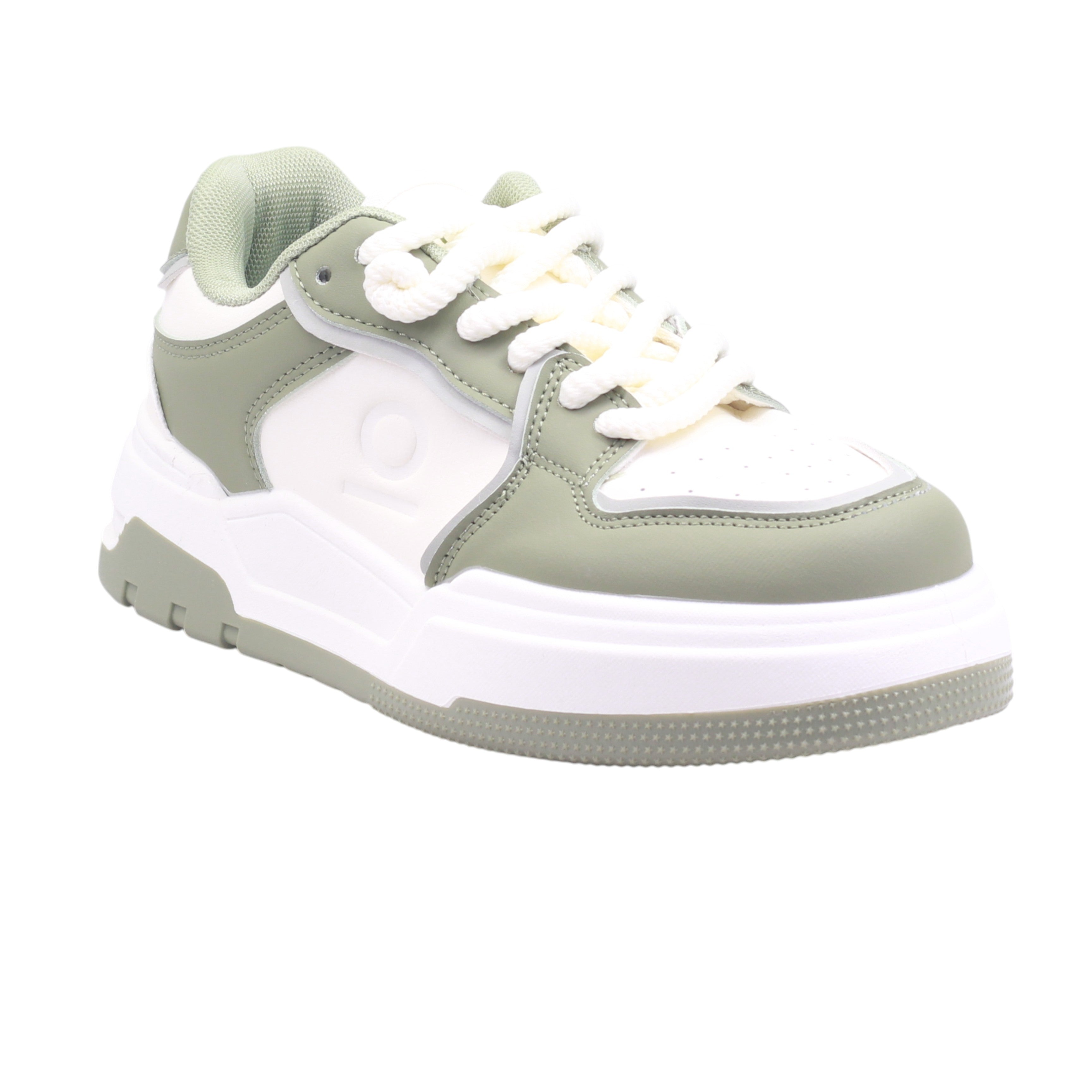 Tenis para dama marca Ozono en colores blanco/verde. Tenis femenino con corte textil y forro sintético, ideal para quienes buscan estilo y comodidad en el día a día. Su suela robusta de 5.00 cm proporciona una plataforma elevada que mejora la postura y amortigua el impacto al caminar.