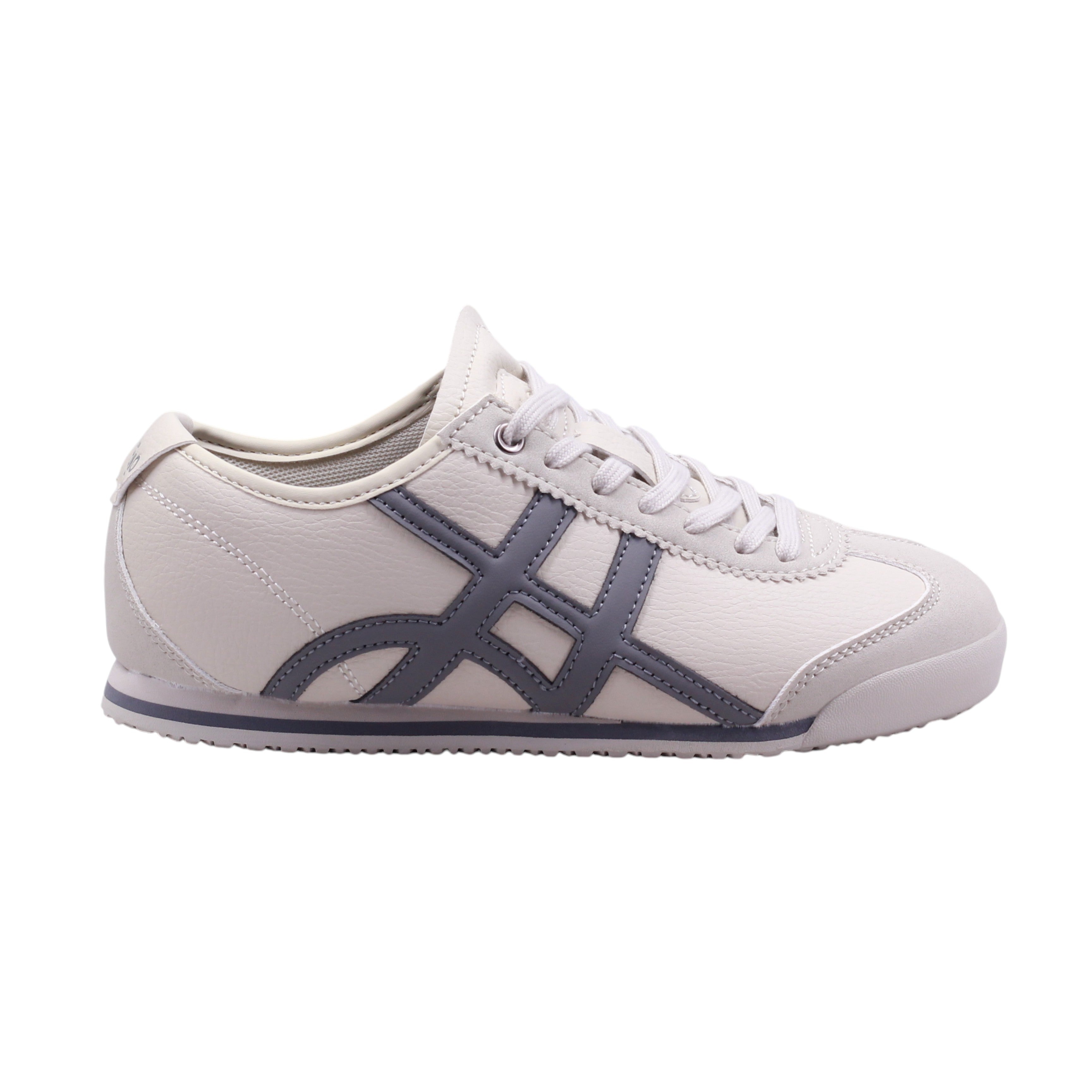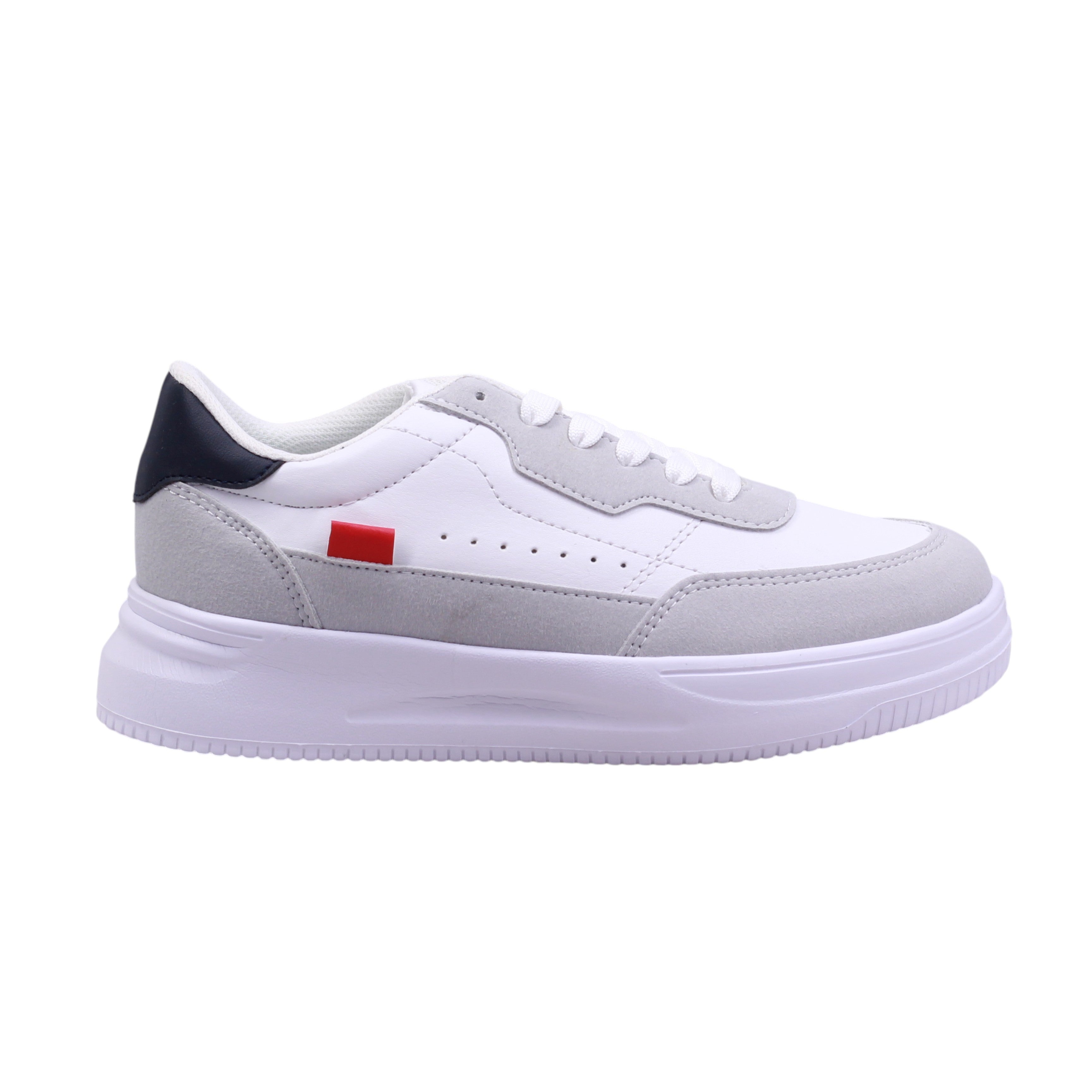 Tenis blanco para mujer con detalles en gris y negro, plataforma de 4.0 cm