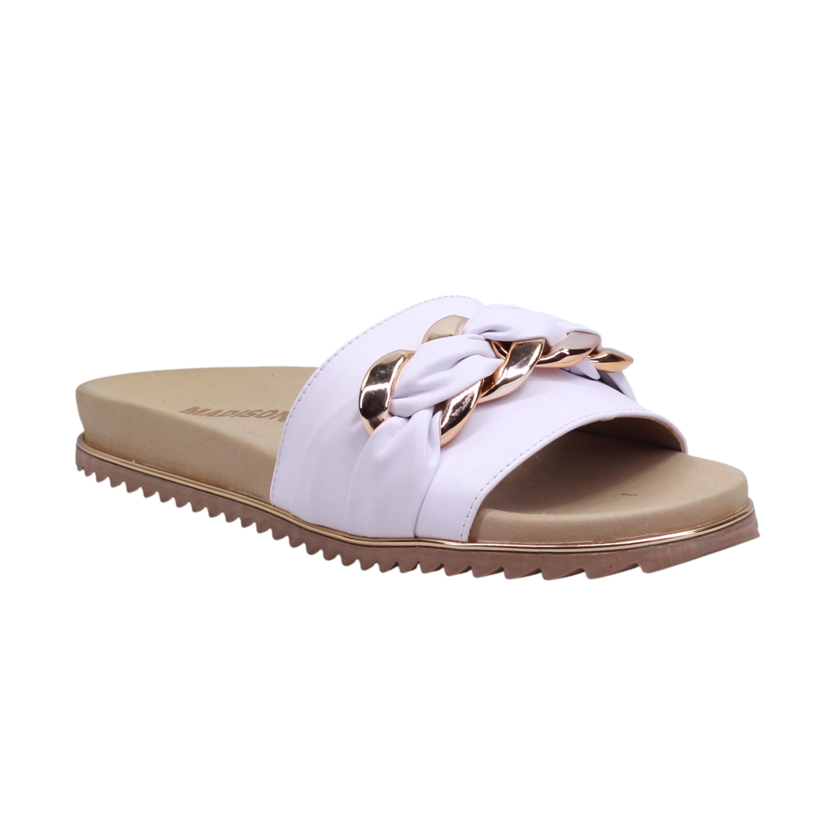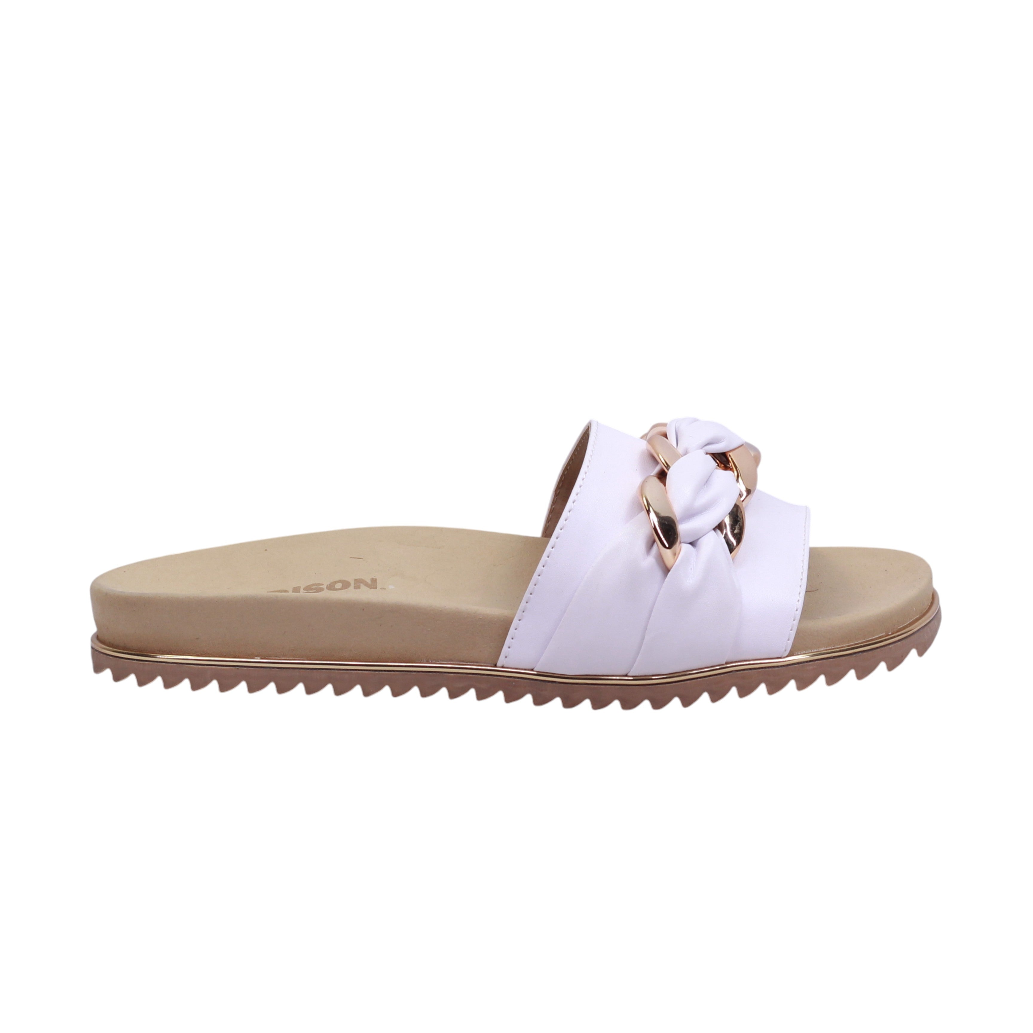 Sandalia tipo slide con herraje decorativo y suela dentada