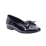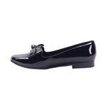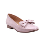Calzado tipo flat disponible en colores maquillaje y negro, elaborado con corte y forro artificial. Su diseño cerrado presenta una punta redonda que favorece la comodidad, acompañado de un moño decorativo al frente con terminaciones metálicas que aportan un detalle femenino y elegante.