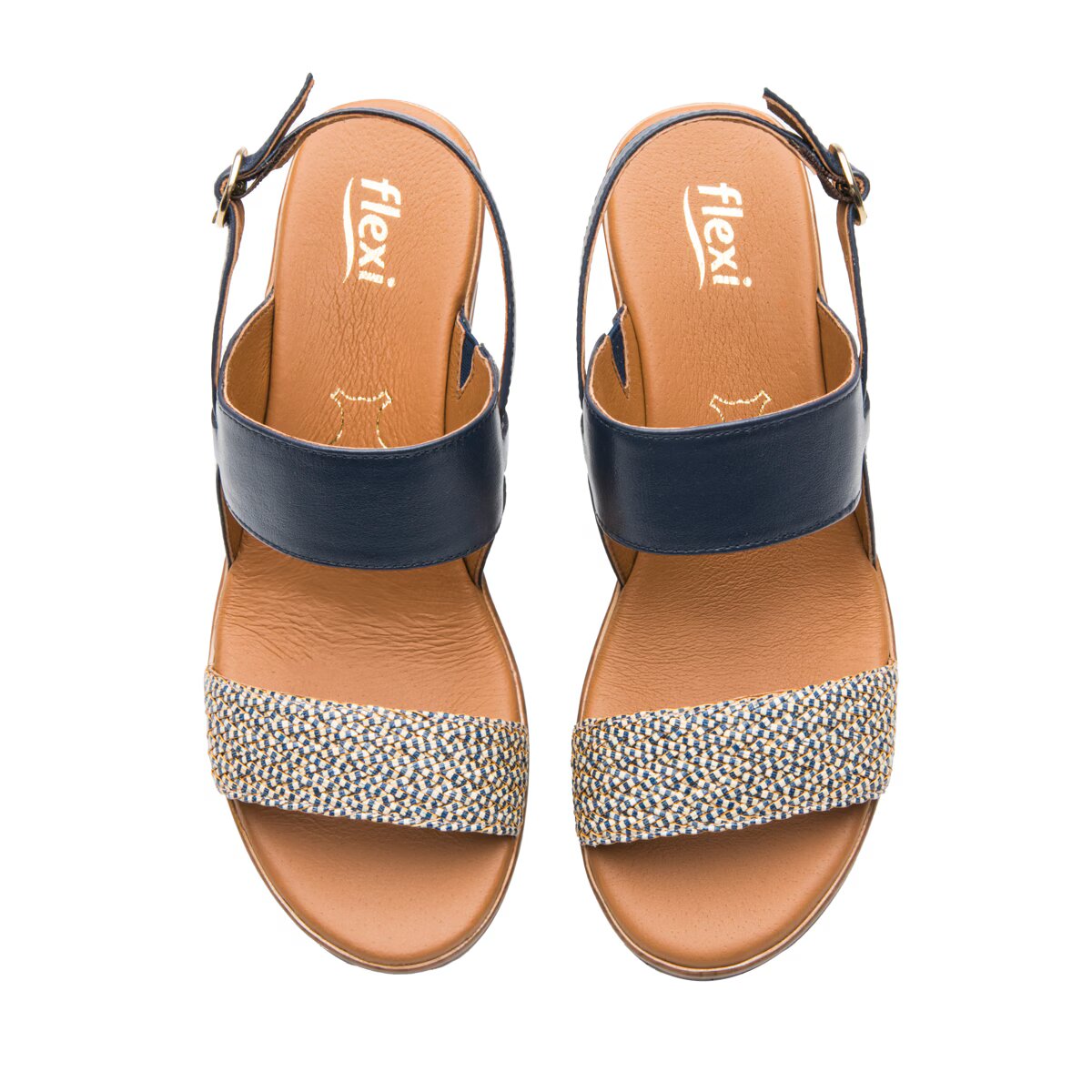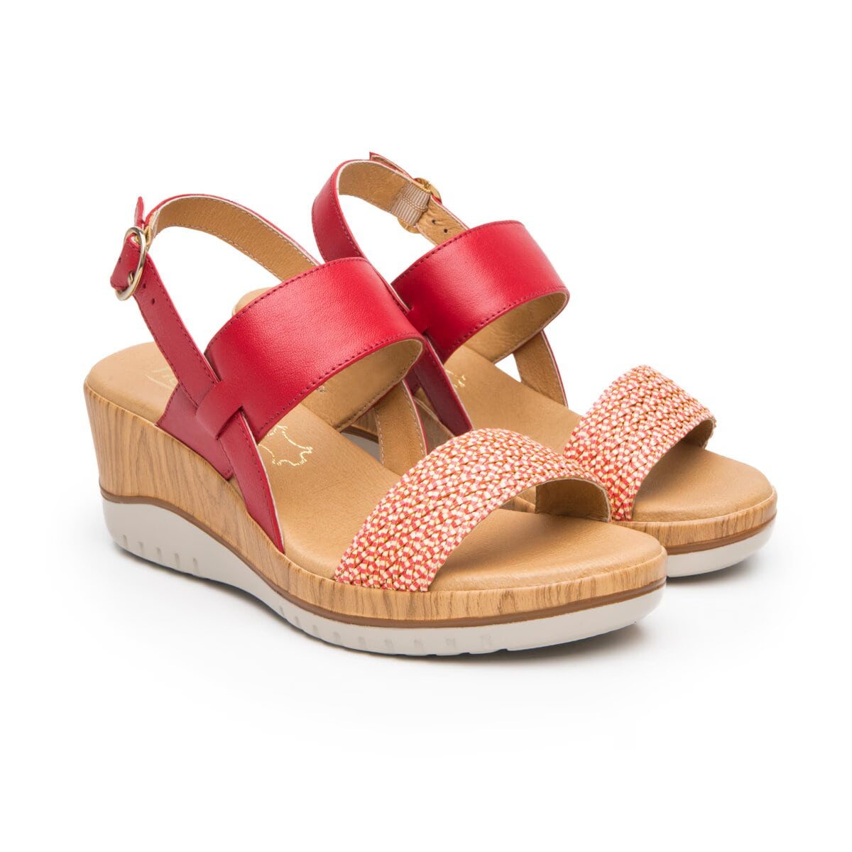 Plataforma para dama marca Flexi en colores carmin y marino. Es una sandalia de confort, lo cual permite comodidad paso a paso. Su diseño clásico con acabado en piel vacuna y doble tira de corte con una vista atractiva, además cuenta con una ligera plataforma de 6,4 centímetros más, su plantilla forrada en piel porcina, le dan un toque atractivo. Plantilla acojinada para esas caminatas especiales, perfectos para el día a día.