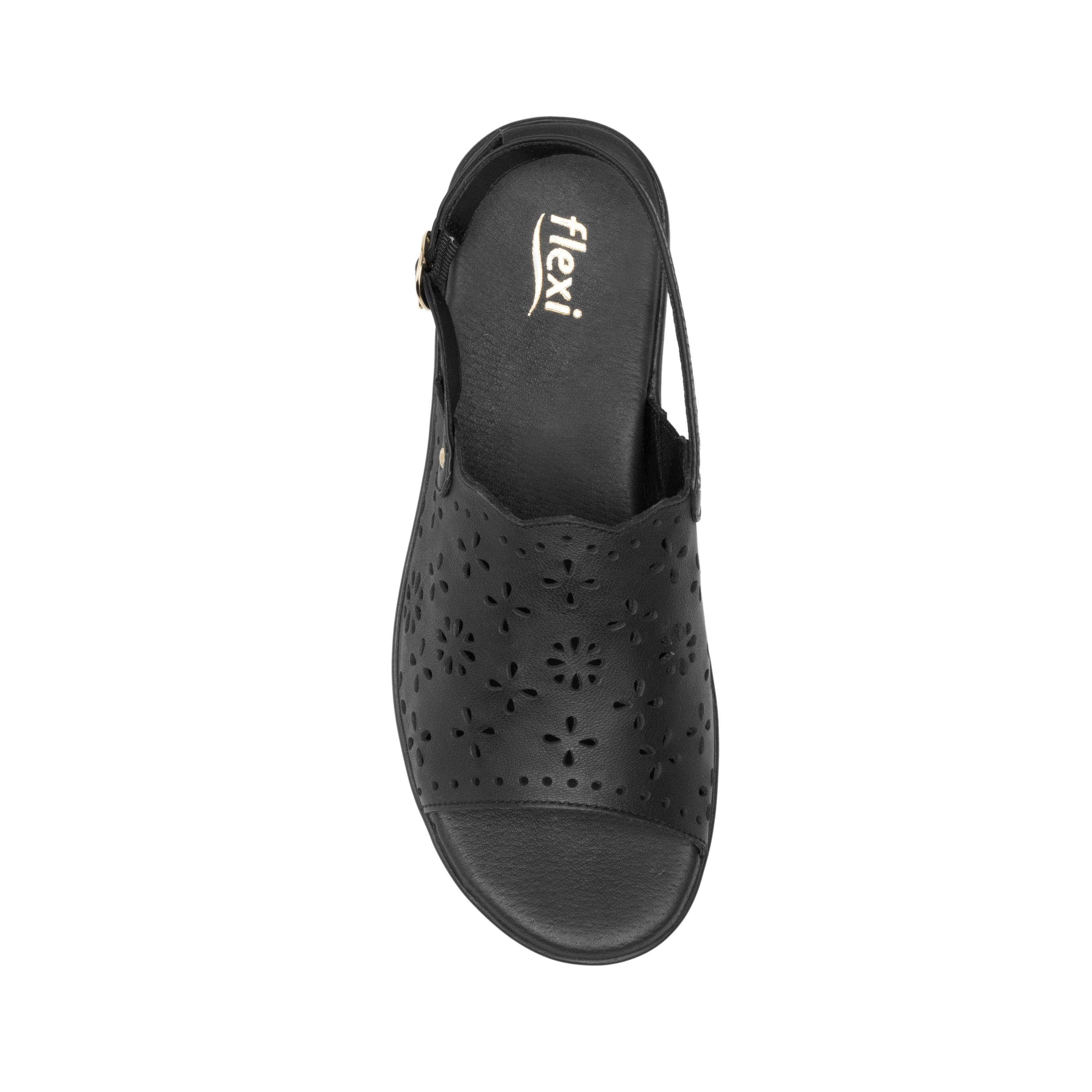 Sandalia para dama marca Flexi en color negro. Corte con perforaciones y plantilla acojinada transpirable, más tira ajustable con hebilla para mayor estabilidad, este lindo modelo es ideal para darle gran comodidad a tus pies, son excelentes para caminatas y fácil combinación con tus prendas favoritas.