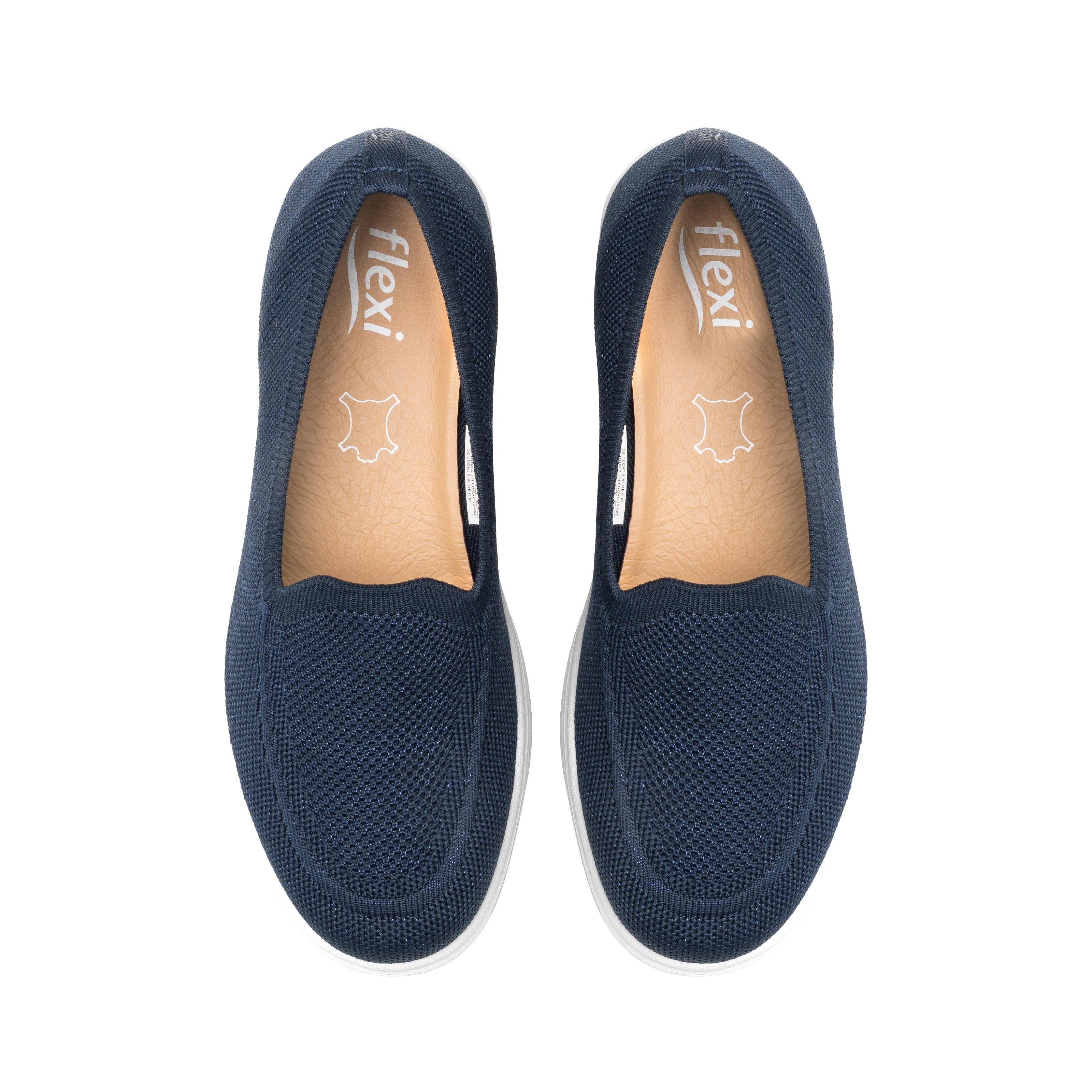 Calzado para dama marca Flexi en colores azul, negro y maquillaje. Este cómodo modelo slip on para dama está hecho con materiales ligeros y suaves, como textil y plantilla porcina, lo que garantiza una experiencia de uso agradable. Además, su suela con una altura de 4.00 cm proporciona un mayor soporte y comodidad para tus pies. Ideal para un estilo de vida activo y cómodo.