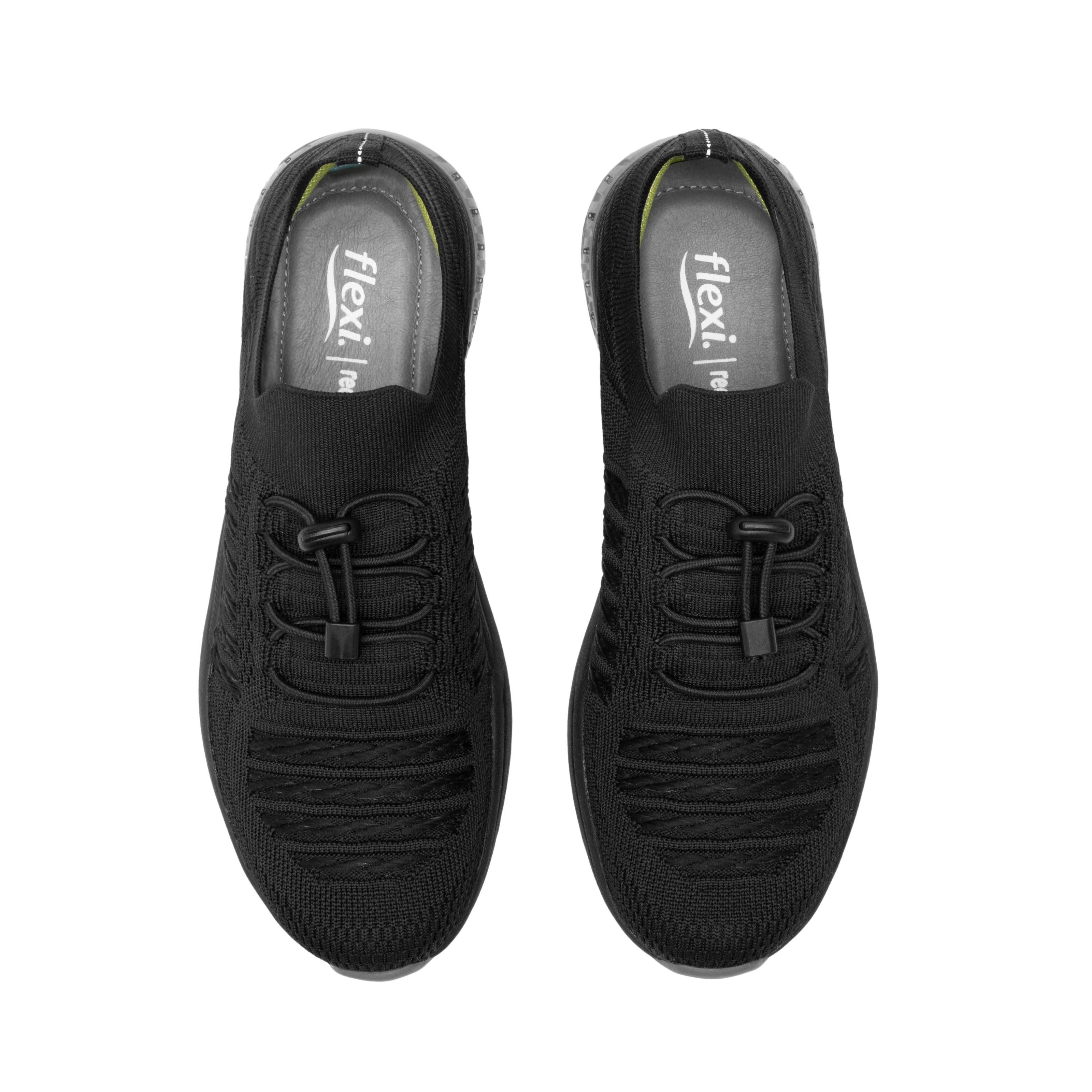 Calzado tipo tenis para dama marca Flexi en color negro. Es un bonito modelo con acabado en textil, lo cual le da el aspecto único e ideal que esperas. Es ideal para cualquier ocasión casual, su plataforma de 2.00 centímetros y su plantilla acojinada te dará comodidad paso a paso.