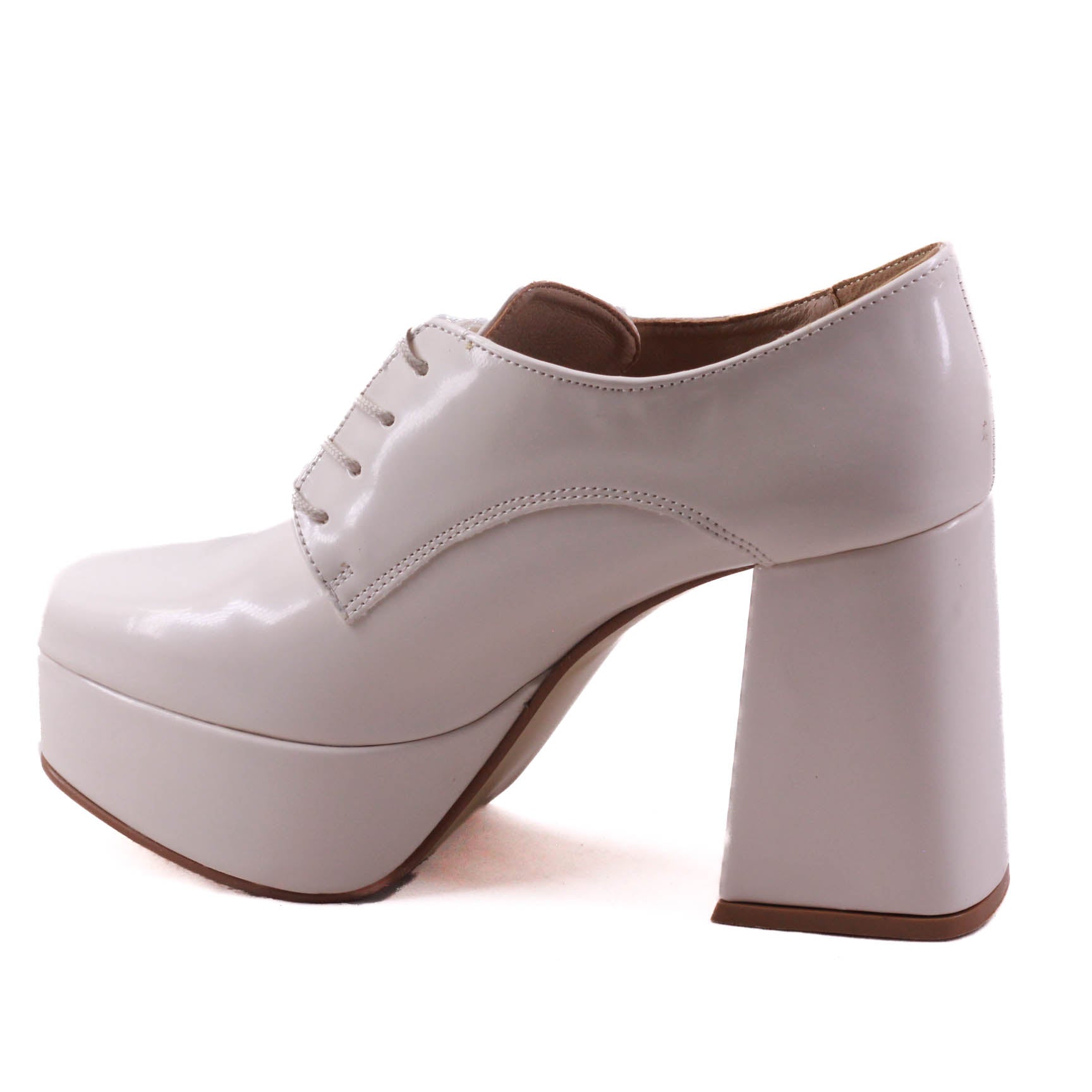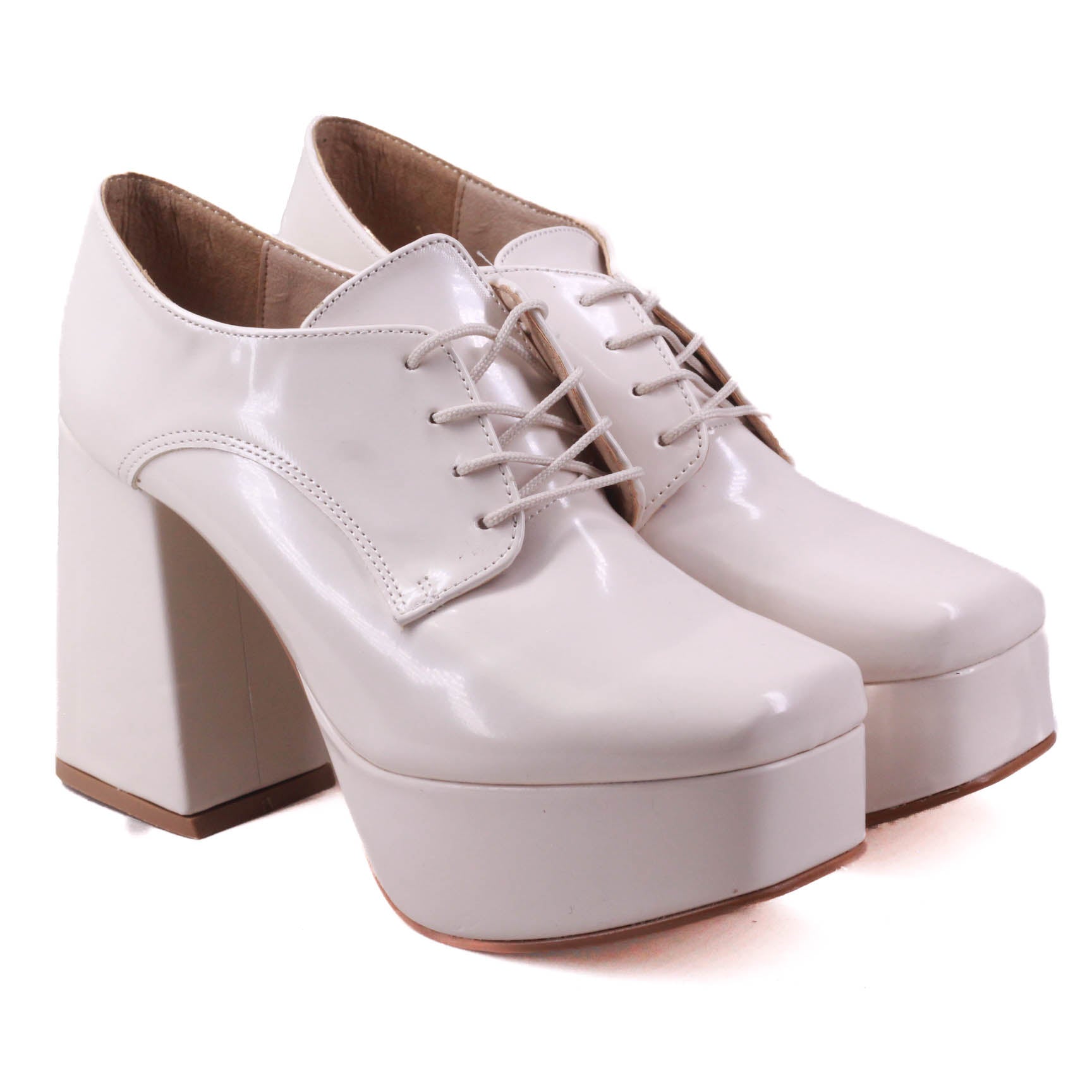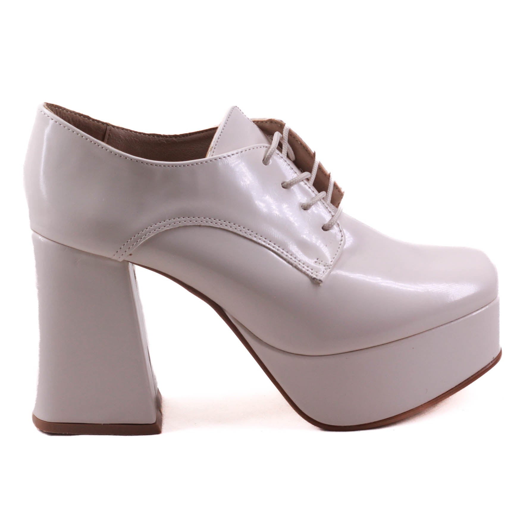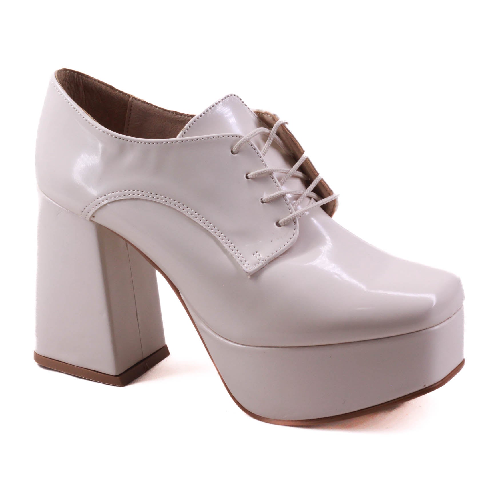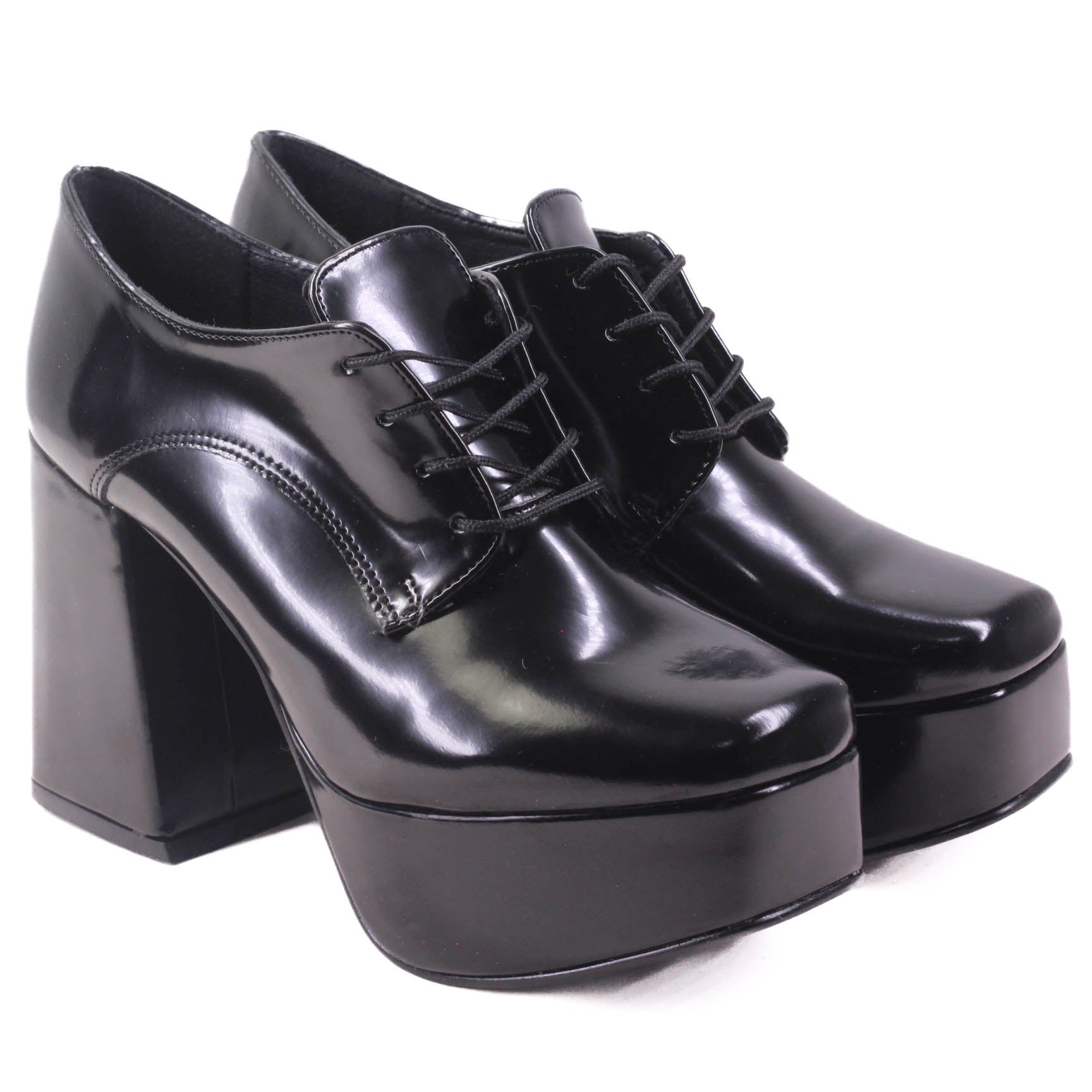 Calzado para dama marca Glenn en colores late y negro. Modelo con plataforma alta y tacón cuadrado grueso y alto para dar el equilibrio deseado más la comodidad que otorga, el tacón y plataforma cuentan con un terminado en charol, lo cual hace este modelo lucidor y listo para toda ocasión.