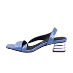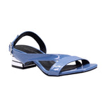 Zapatilla para dama marca Alfonso Coronna en colores azul y maquillaje. ¡Mejora tu estilo con estos zapatos de tacón modelo de tacón ancho y luminoso de 3.5 cm de altura! Su corte en charol y su ajuste con hebilla no solo te harán lucir elegante, sino que también te brindarán comodidad y seguridad al caminar. ¡No esperes más para añadirlos a tu guardarropa!