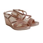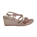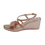 Plataforma para dama marca Francis en color oro rosado. Modelo perfecto para usar en las ocasiones especiales que tengas, su peso ligero y plataforma trasera medio-alta te hará estar cómoda a cada paso. Cuenta con doble tira en cruce al tobillo, un ajuste perfecto y una tira ancha de frente cubierta con pedrería.