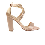 Zapatilla para dama marca  Rivedy  en color negro y oro rosado. Bonito diseño con tiras delgadas en cruce del lado del empeine, cuenta con tacon ancho de 8.00 centímetros para mejor soporte y comodidad, este tipo de zapatillas es muy cómoda gracias a la altura, es un modelo combinable y te hará lucir genial en tus reuniones.