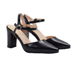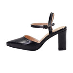 Zapatilla de punta con tacón ancho y ajuste al tobillo