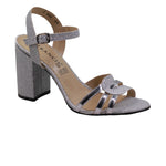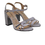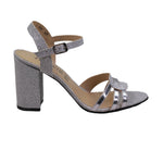 Zapatilla para dama con baño de glitter y tiras metalizadas