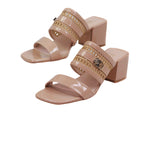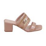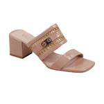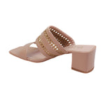 Zapatilla para dama marca Felipe Rivera en colores  maquillaje. Este atractivo diseño cuenta con un tacón ancho de 6,00 centímetros, doble tira para un ajuste perfecto a la piel con detalles de piel perforada con un elegante adorno lateral.