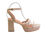Sandalias cómodas, se ven muy bien. El color es como un beige muy sutil casi blanco, pero no es blanco.