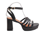 Zapatilla para dama de tacón cuadrado alto y cuatro tiras delanteras