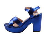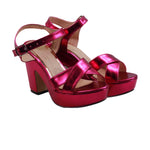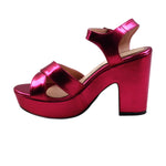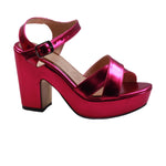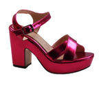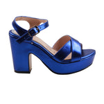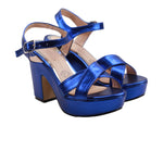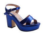 Zapatilla para dama marca Alfonso Coronna en colores cobalto, buganvilia e inox, diseño formal de novedosos colores, tacón ancho y plataforma para una mejor estabilidad, este lindo modelo es ideal para cualquier reunión.