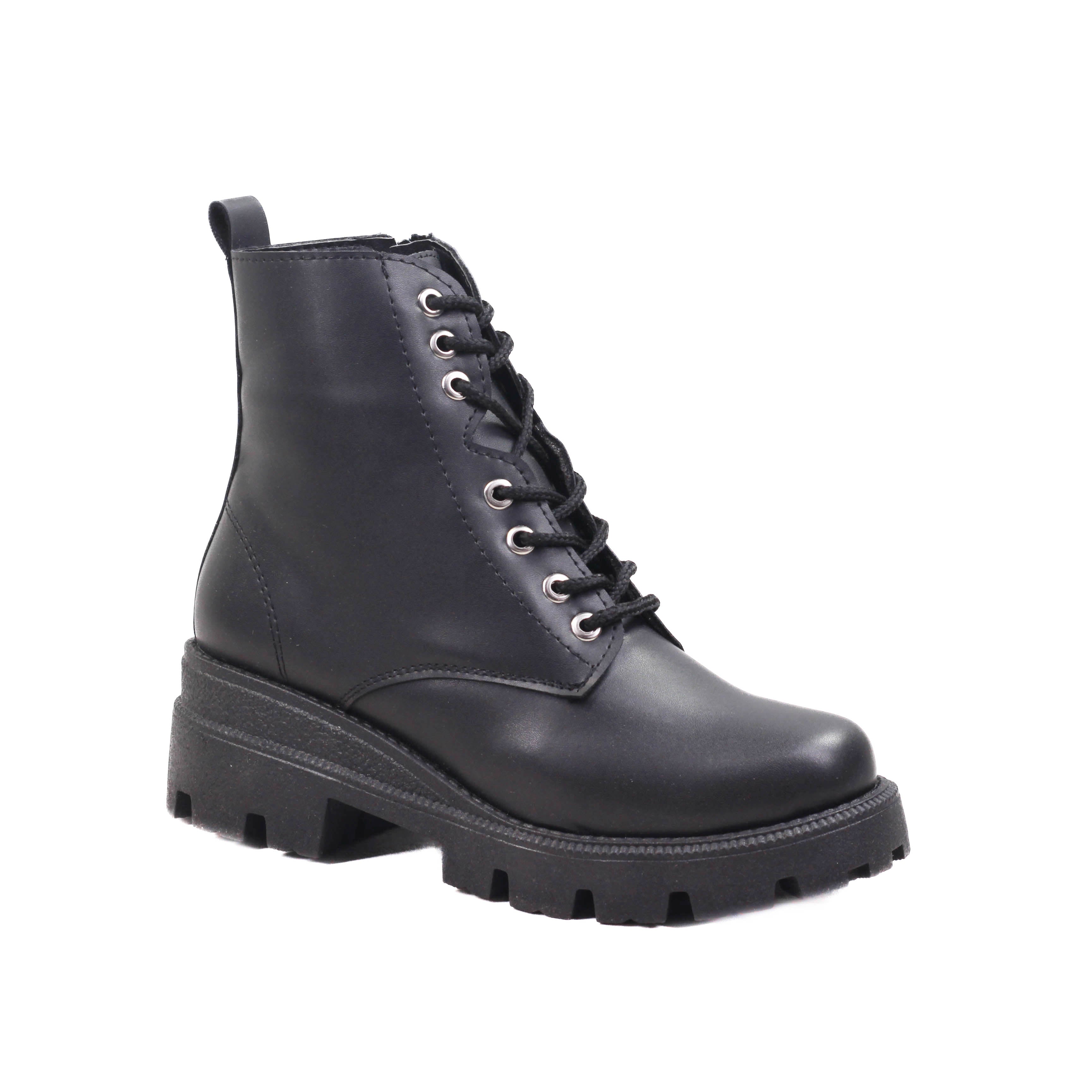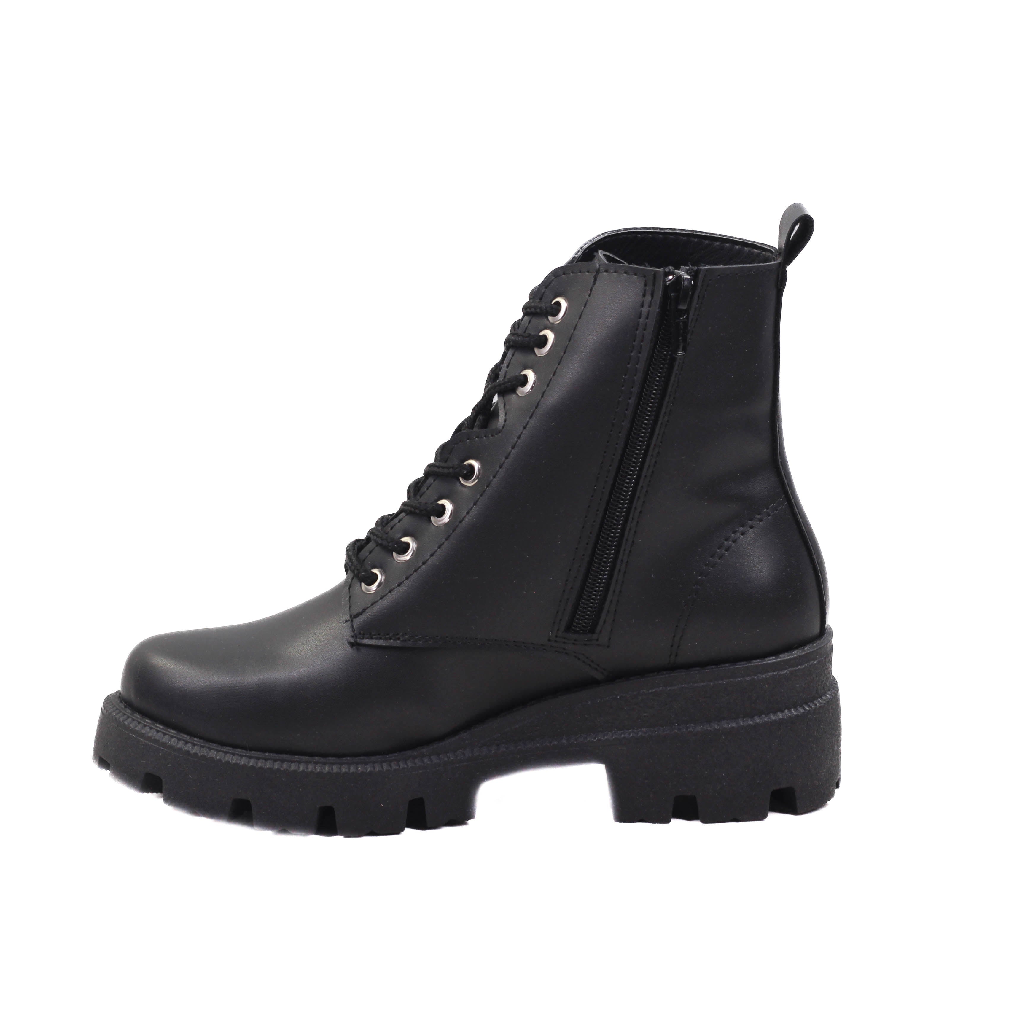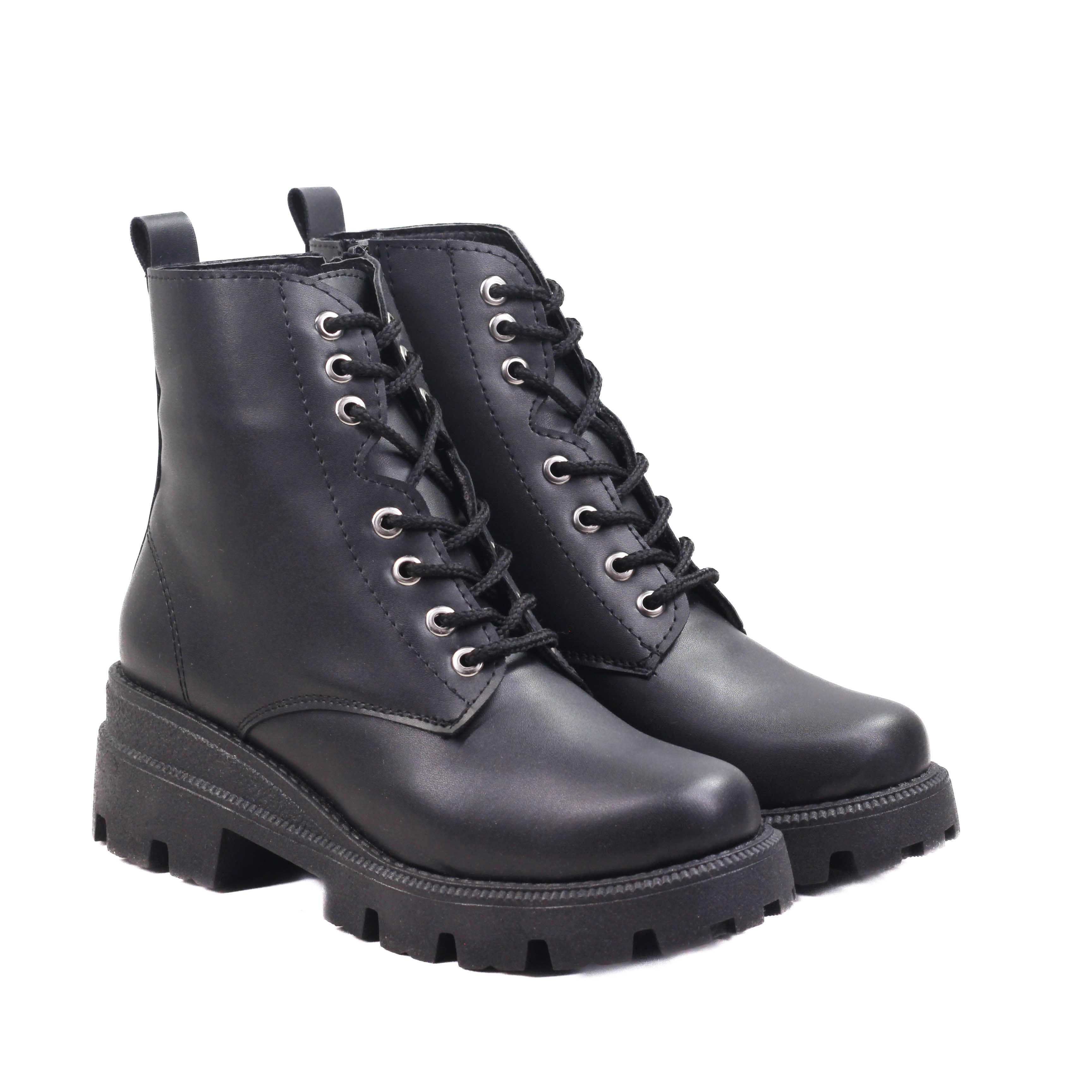 Bota para dama tipo militar marca Francis en color negro, este diseño cuenta con una comodidad y flexibilidad que te permitirá estar cómoda a cada paso, Su bonito diseño te dará la seguridad y staras en tendencia esta temporada. Suela ligera y lista para cualquier camino.
