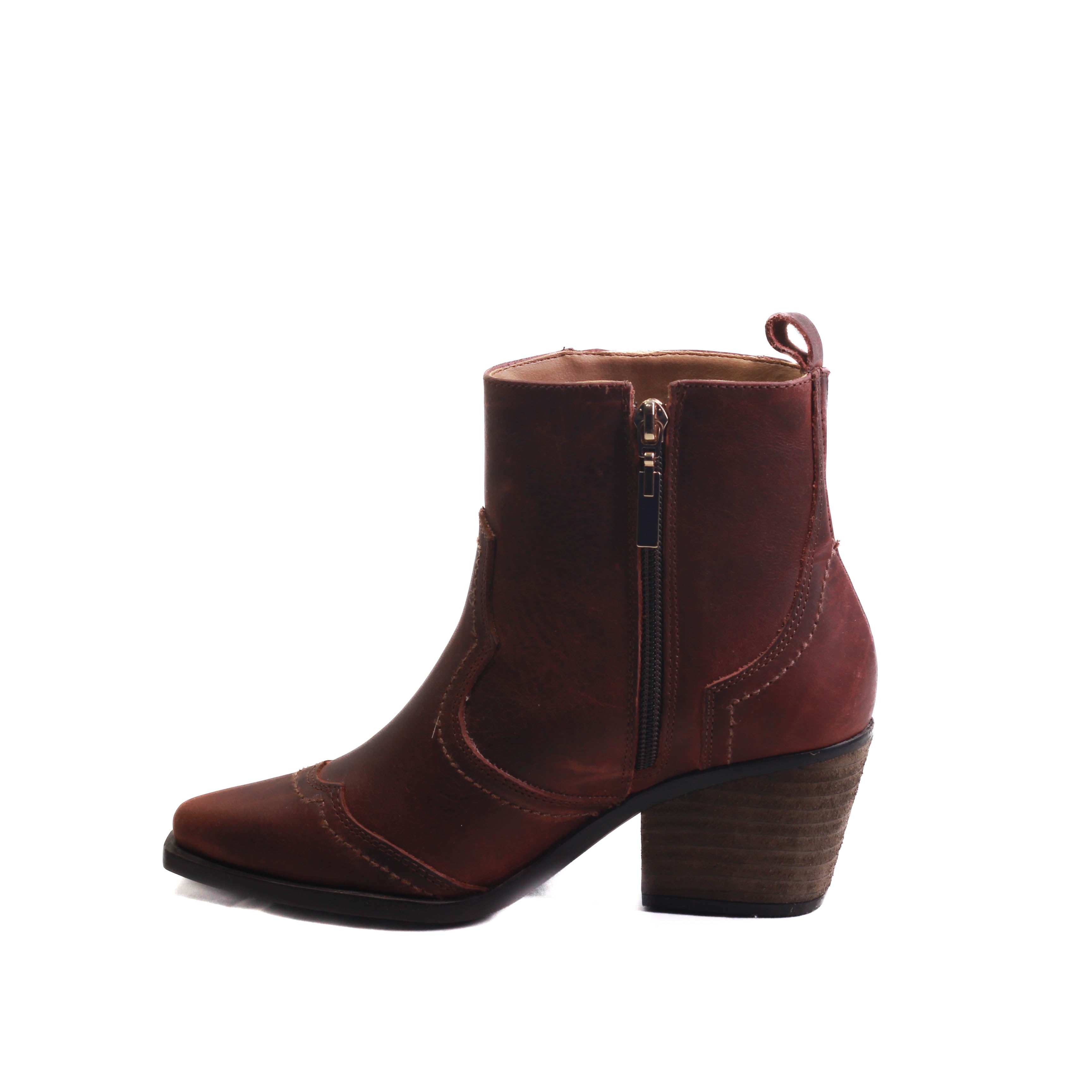 Descubre la fusión perfecta entre estilo vaquero y modernidad con nuestros irresistibles botines de tubo medio en color láte y mosto. Estos botines capturan la esencia del espíritu rebelde y la elegancia contemporánea.