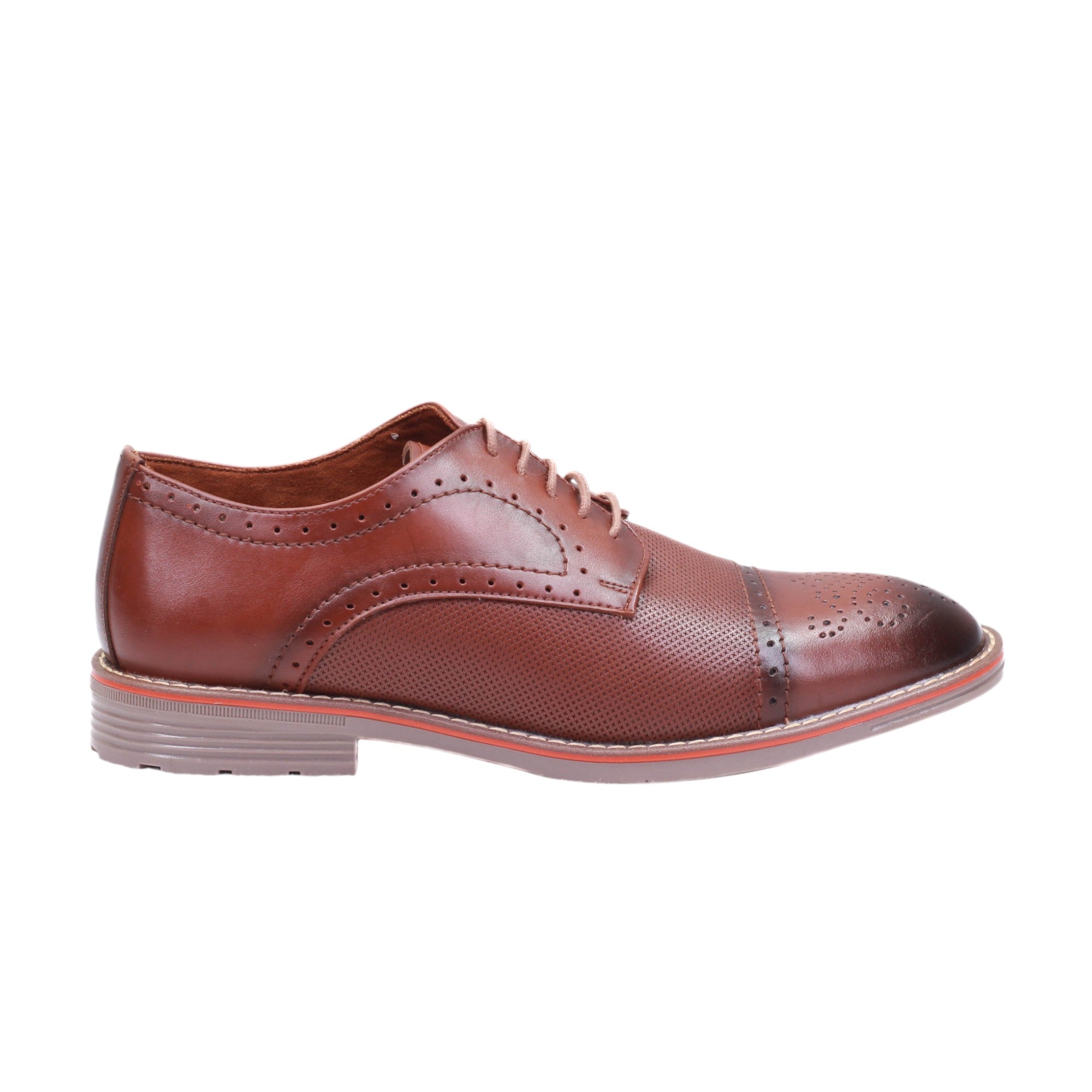 Calzado para caballero tipo bostoniano con piel lisa y grabada