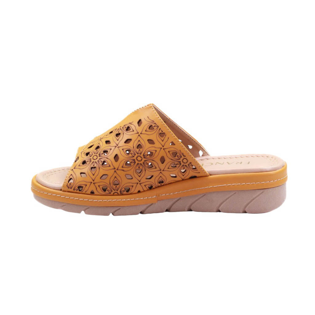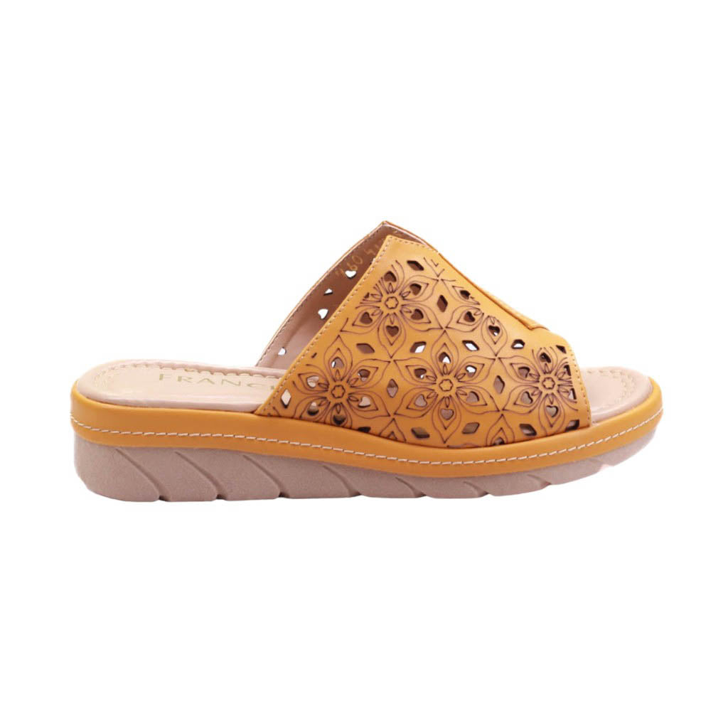 Modelo de plataforma media es la combinación perfecta de estilo y comodidad. Con su corte con perforaciones, permite una mejor ventilación para tus pies, manteniéndolos frescos durante todo el día. Además, su plantilla de confort te brinda un soporte adicional para caminar sin cansancio. Disponible en los colores mostaza y nude para complementar cualquier outfit. ¡Haz una declaración de moda con este calzado de excelente calidad!