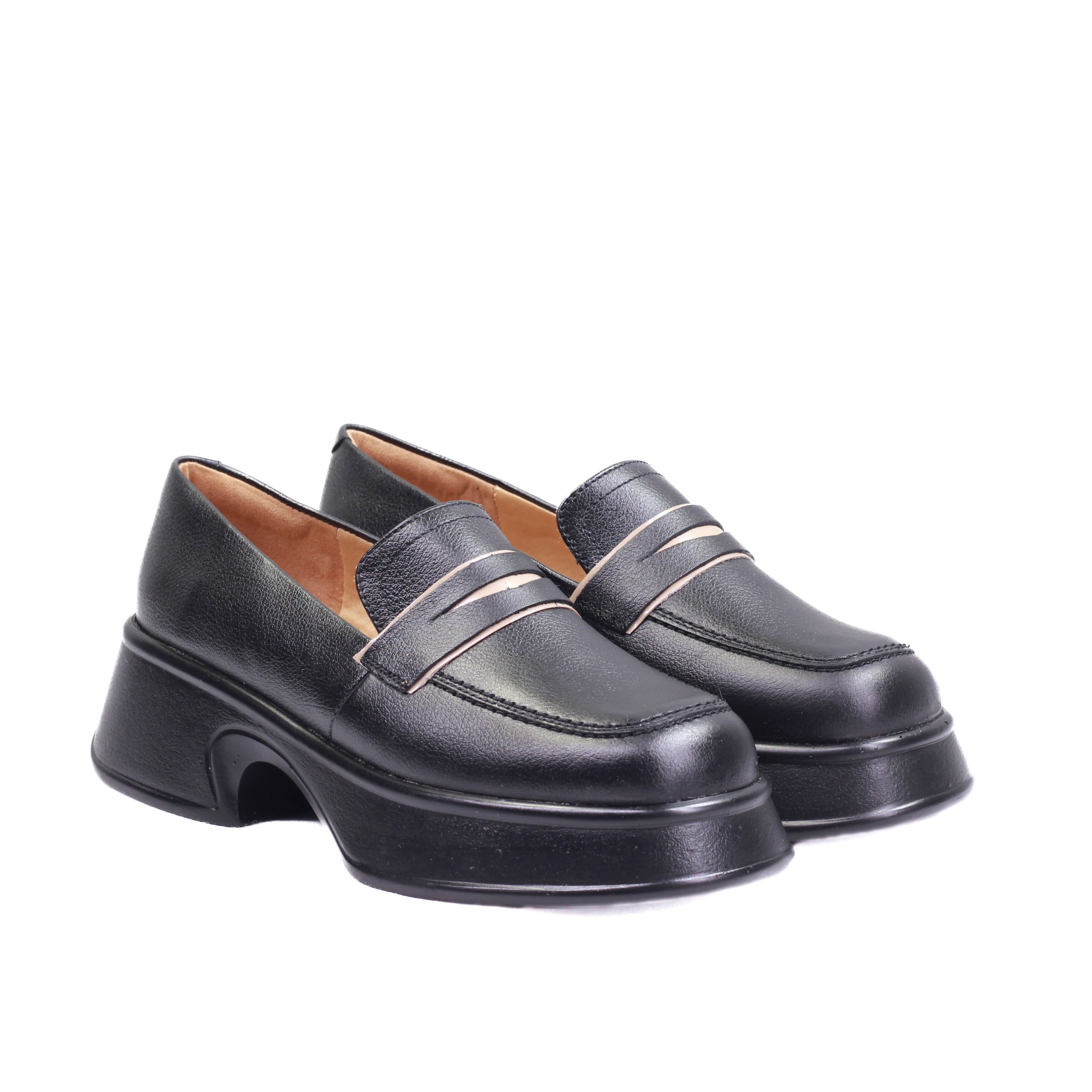 Calzado para dama de plataforma ancha y piel lisa en el corte