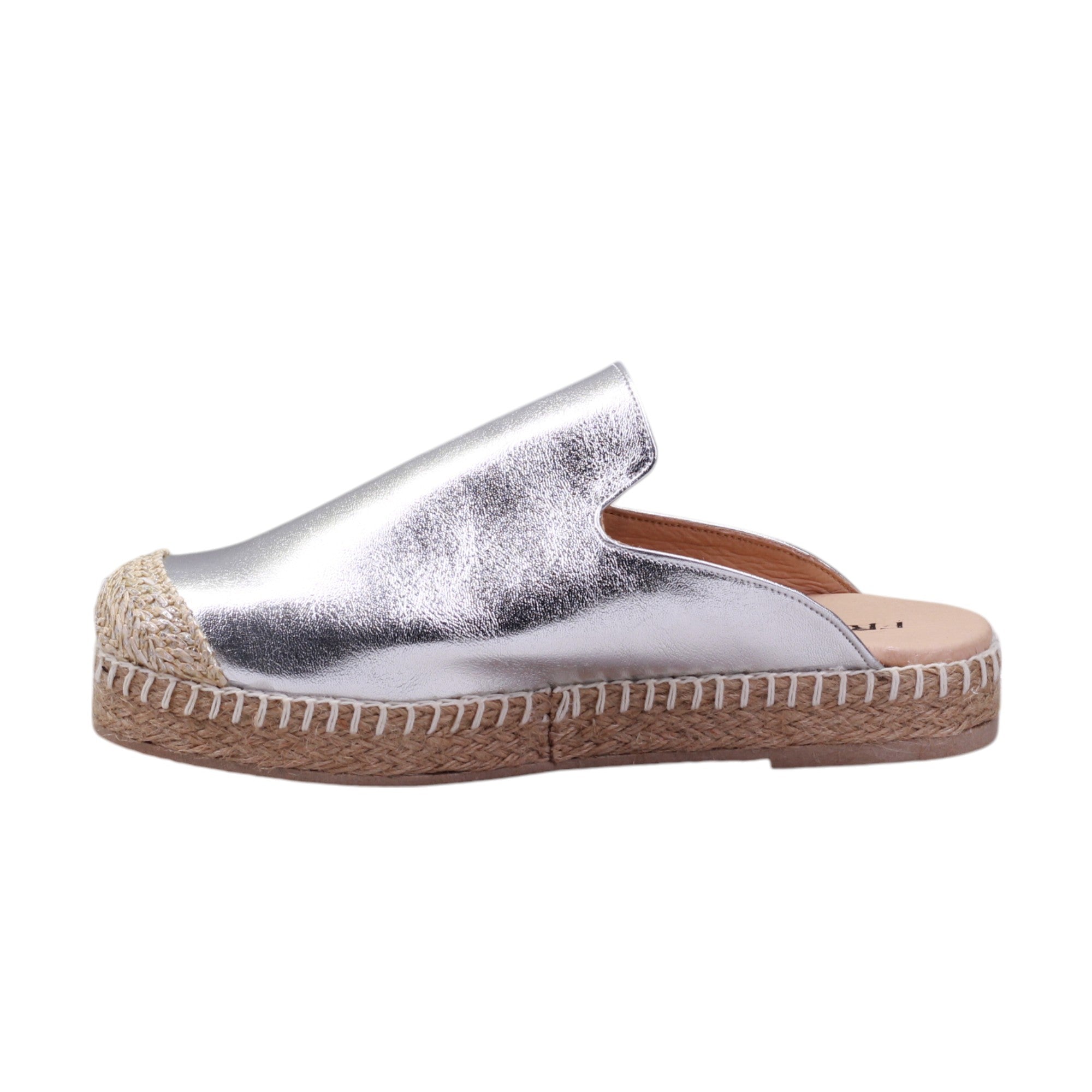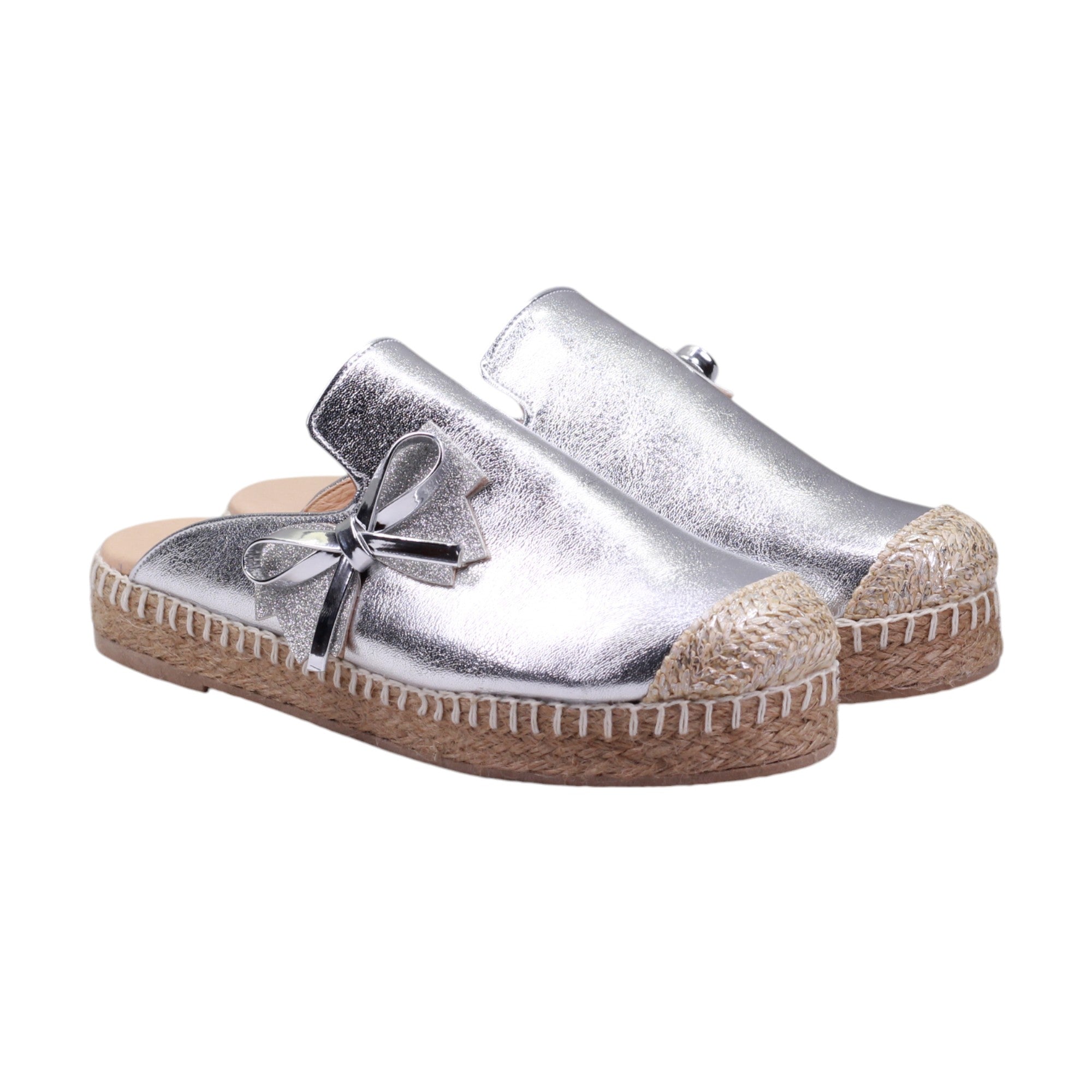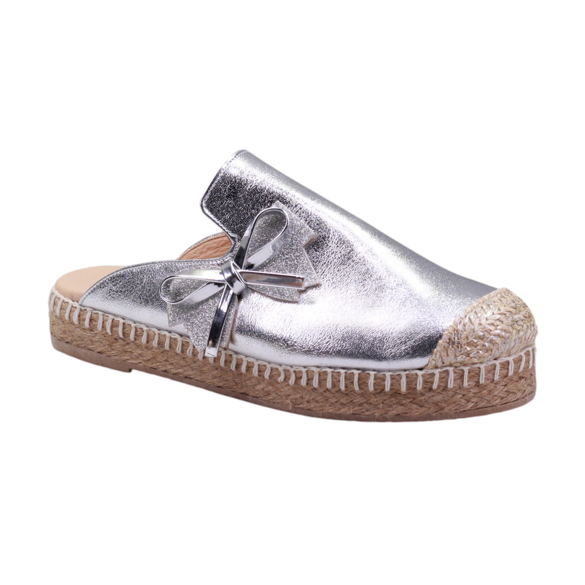 Calzado para dama marca Francis en color plata. Este modelo de media plataforma tiene una altura de 2.5 cm y cuenta con un moño lateral de adorno en su corte. La plataforma y la punta presentan un diseño de tejido único, brindando un look moderno y sofisticado. Perfecto para completar cualquier atuendo.