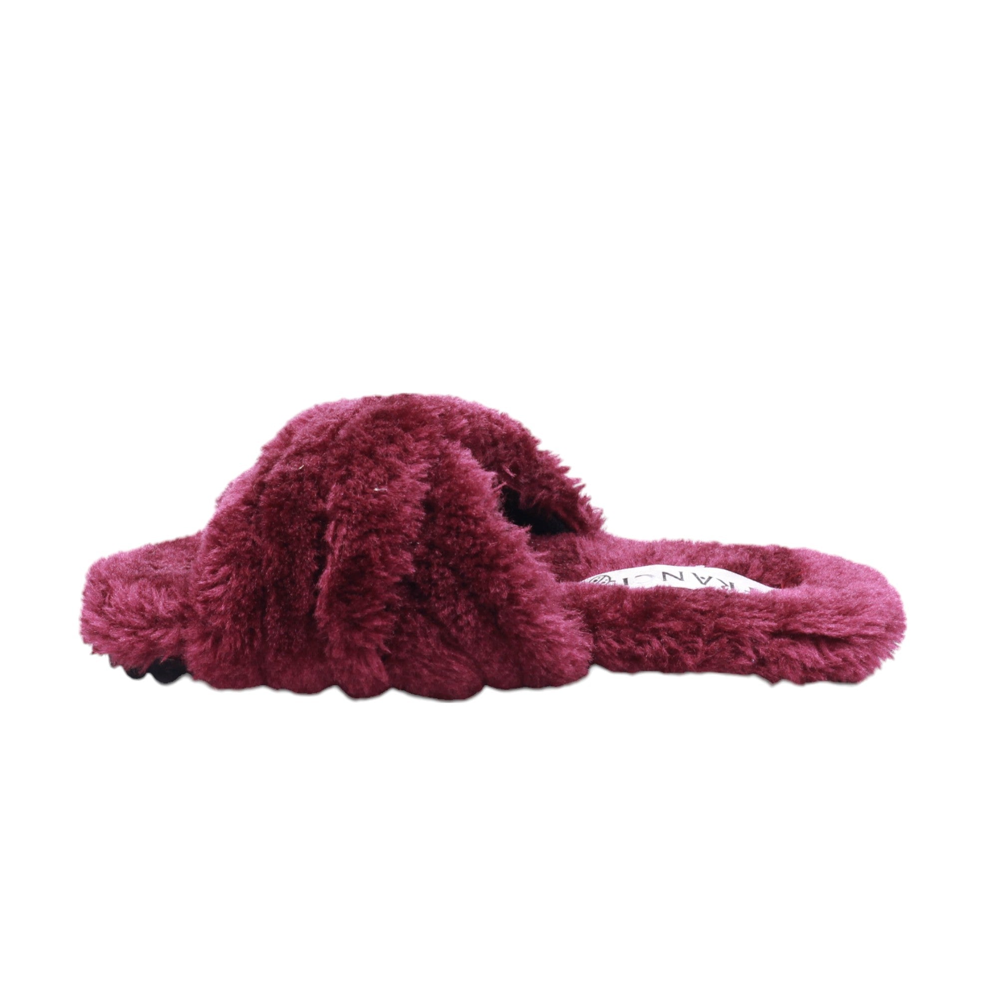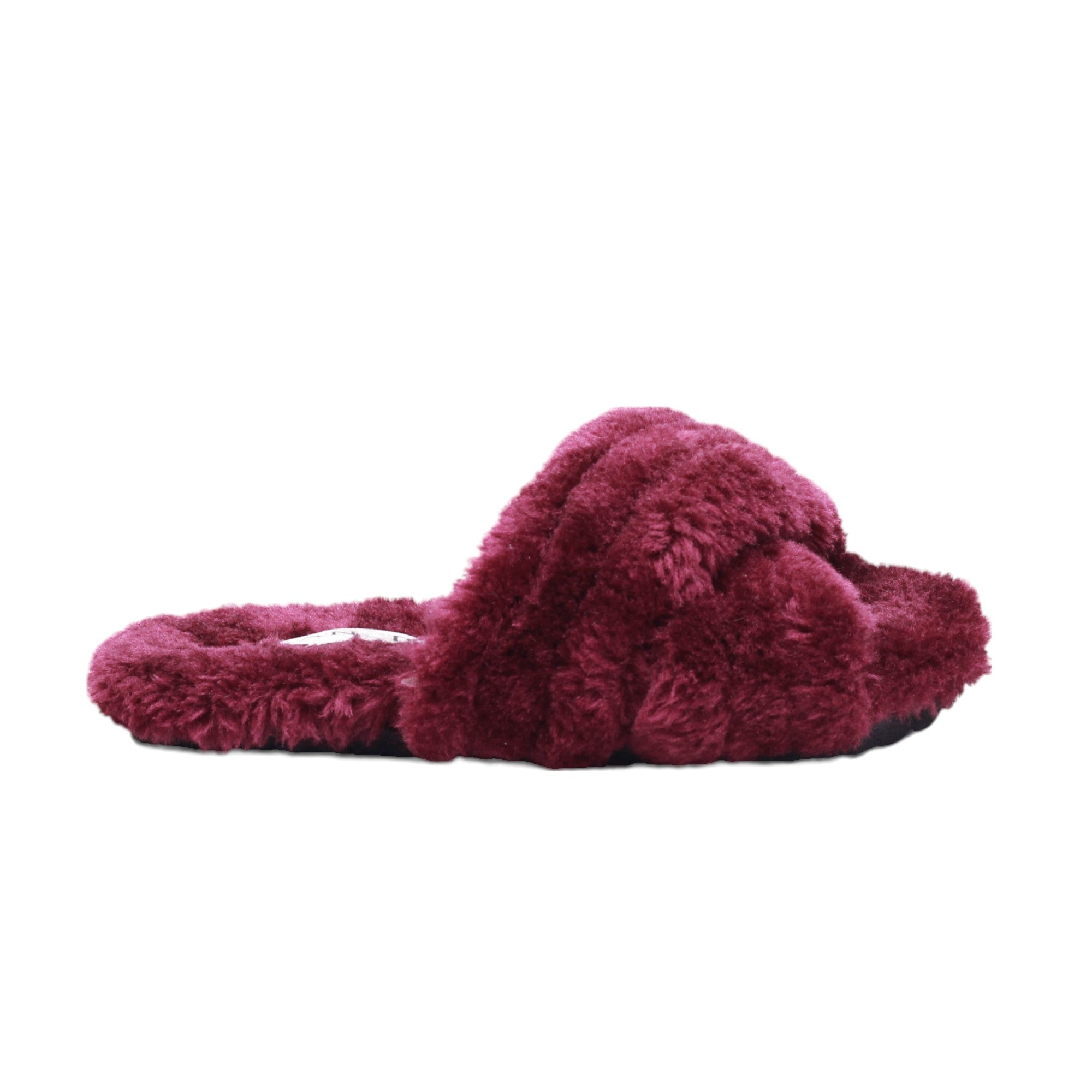 Pantufla para dama marca Francis en color Tinto, este cómodo modelo cuenta con terminado peluche, lo cual permite una comodidad y confort absoluto. Su ligera suela más su plantilla de acolchada hará que estés cómoda a cada paso.