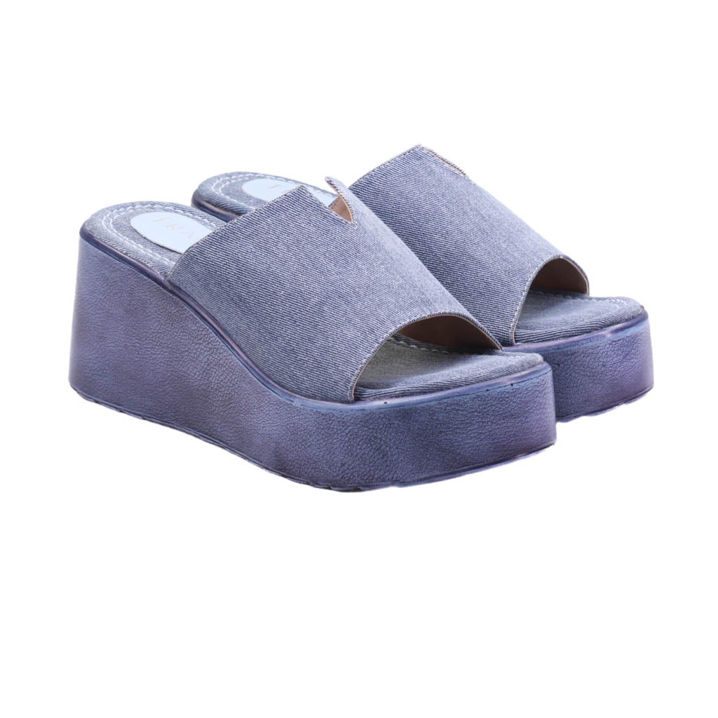 Descubre el encanto moderno y la comodidad elevada con nuestra impresionante sandalia de plataforma alta con corte tipo mezclilla. Esta sandalia combina a la perfección la moda casual con la altura adicional de la plataforma, ofreciendo un estilo único y versátil para tus looks de verano.
