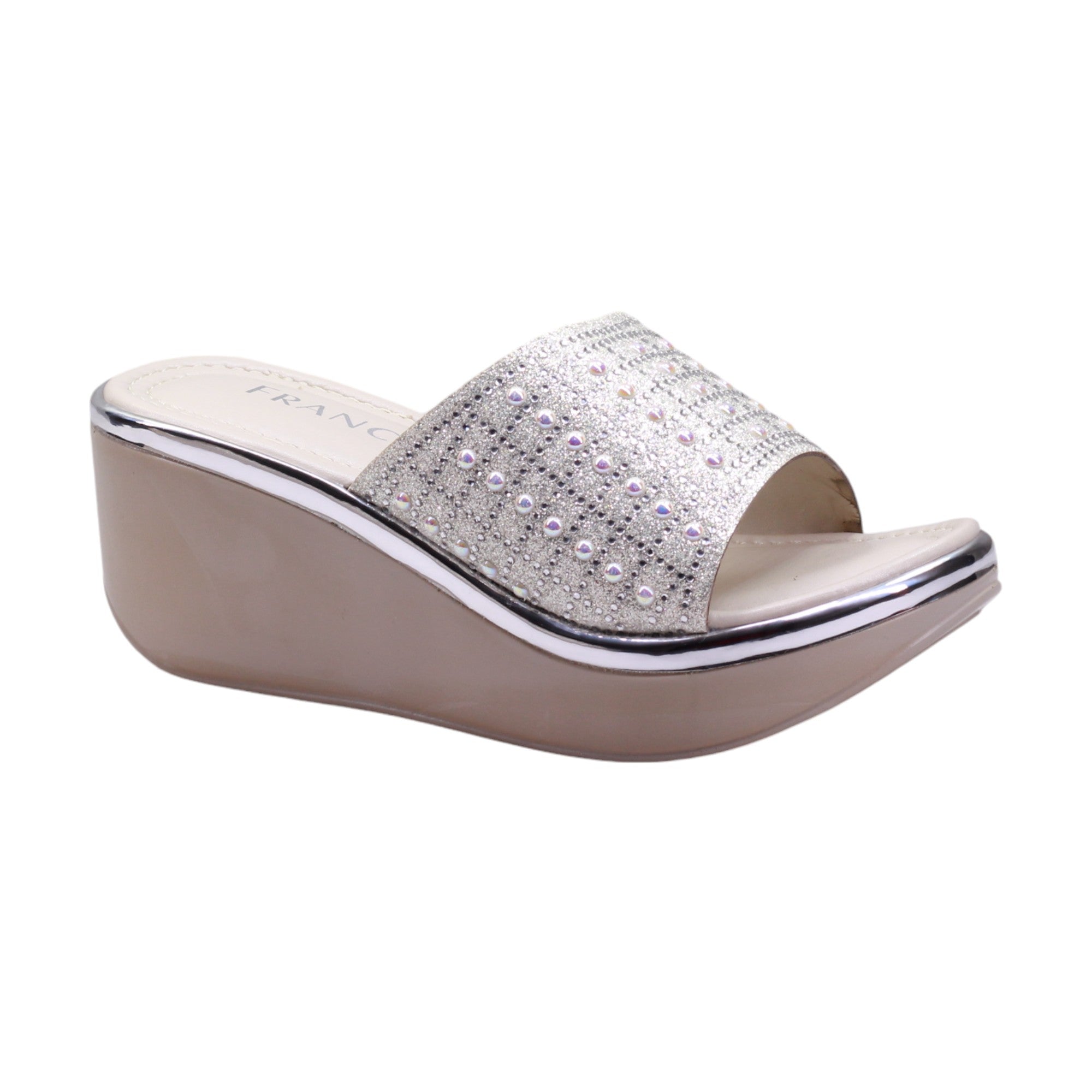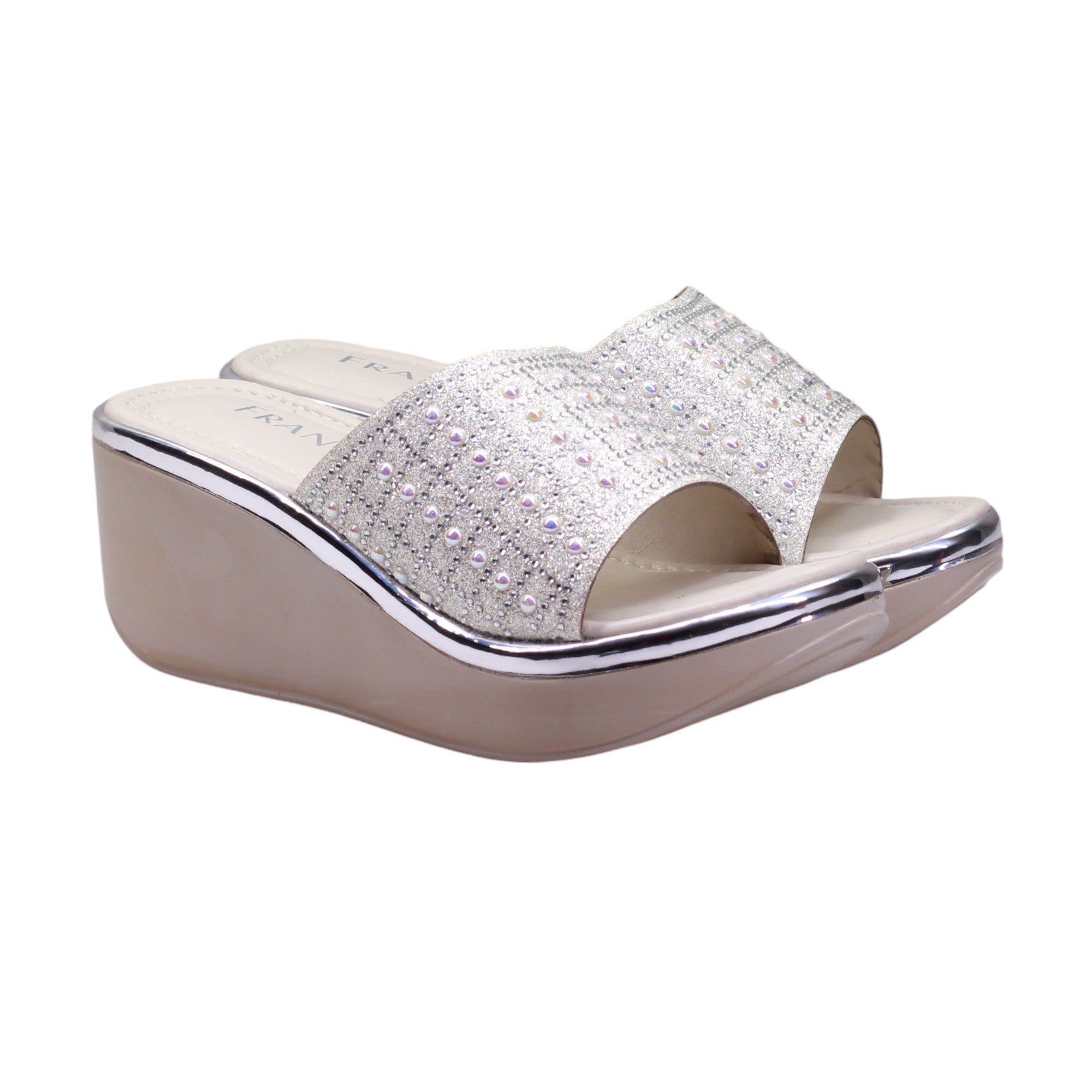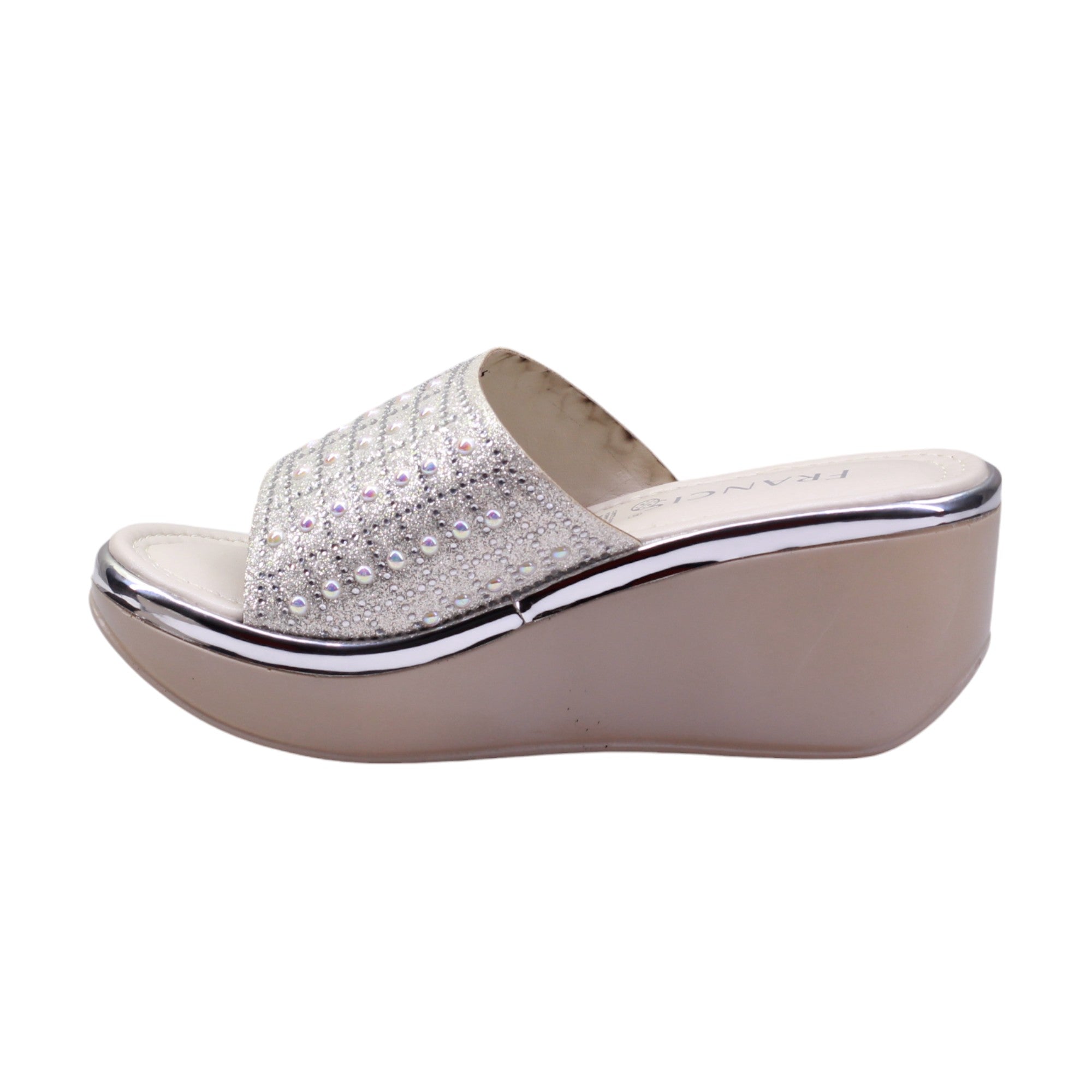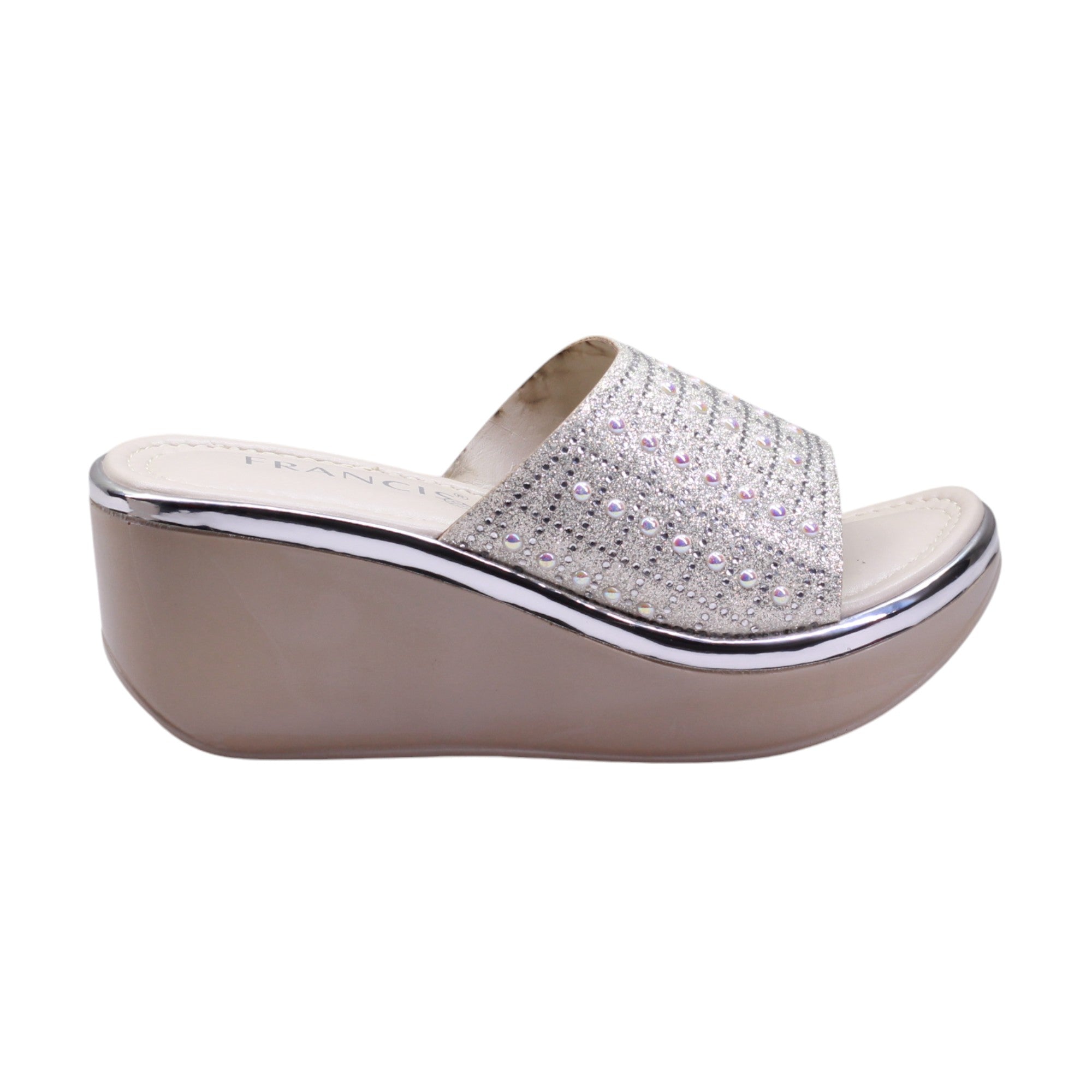 Plataforma para dama marca Francis en color papiro. Superficie de plataforma con una altura de 6.5 cm para brindar una postura elegante y estilizada. Diseño adornado con piedras y medias perlas para un look sofisticado y moderno. ¡Agrega un toque de glamour a cualquier outfit con este modelo único!